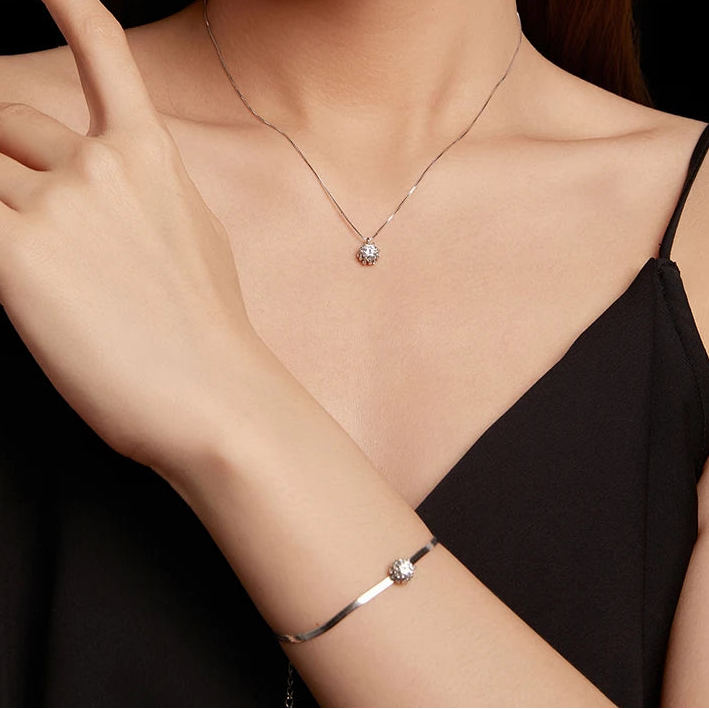 Tejesa 0.5CT Flower Buds Moissanite Necklace/ 925 Sterling Silver Halo Pendant Necklace with Box Chain for Women