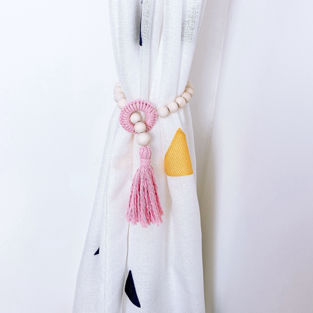 Bead Garlands Curtain Tiebacks Boho Tassel Wood Bead Curtain Rope Holdback Farmhouse Curtain Holders For Drape Decoration