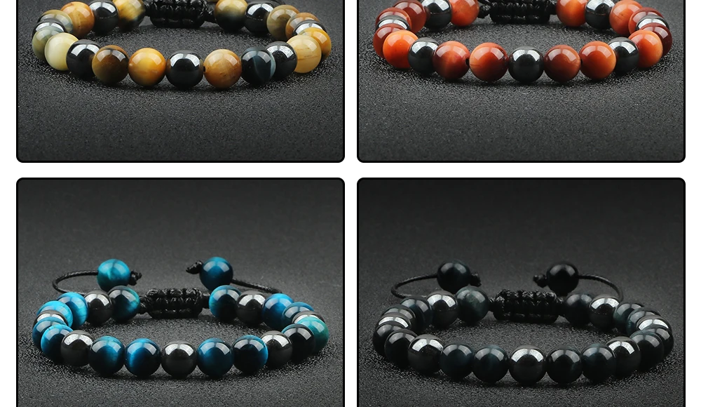 Dropshipping Beaded Men Bracelet Natural Tiger Eye Stone No Magnetic Hematite Onyx Black Lava Beads Bracelets Adjustable Bangles Health Protection Wrist Jewelry Pulsera Erkek Bileklik Homme Lover Gift