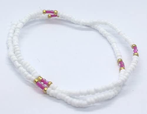 Beautiful Ankle Stretchable Bracelet(Set of 2) (White With Pink)