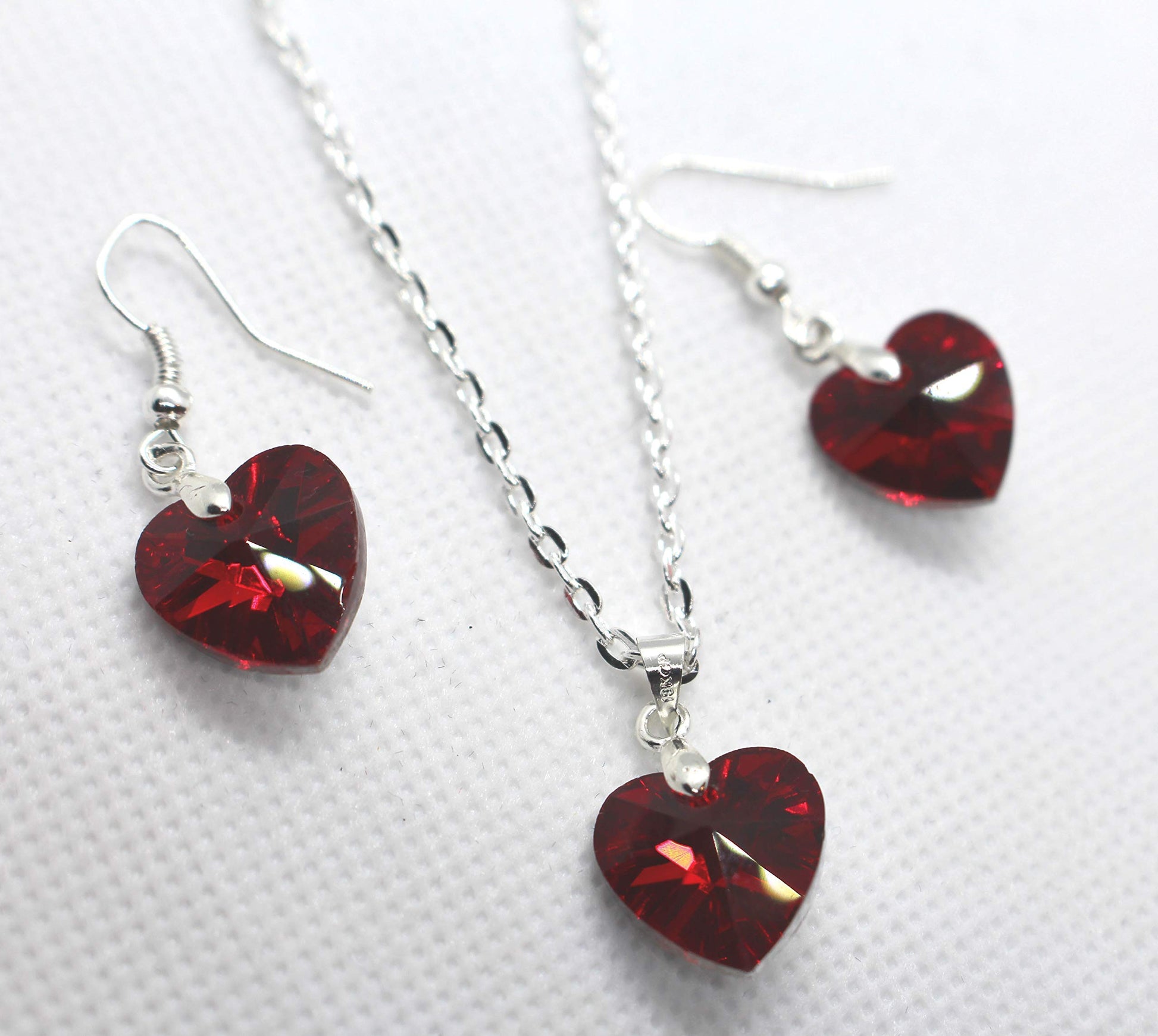 Beautiful Red Crystal Heart Pendant Necklace Set