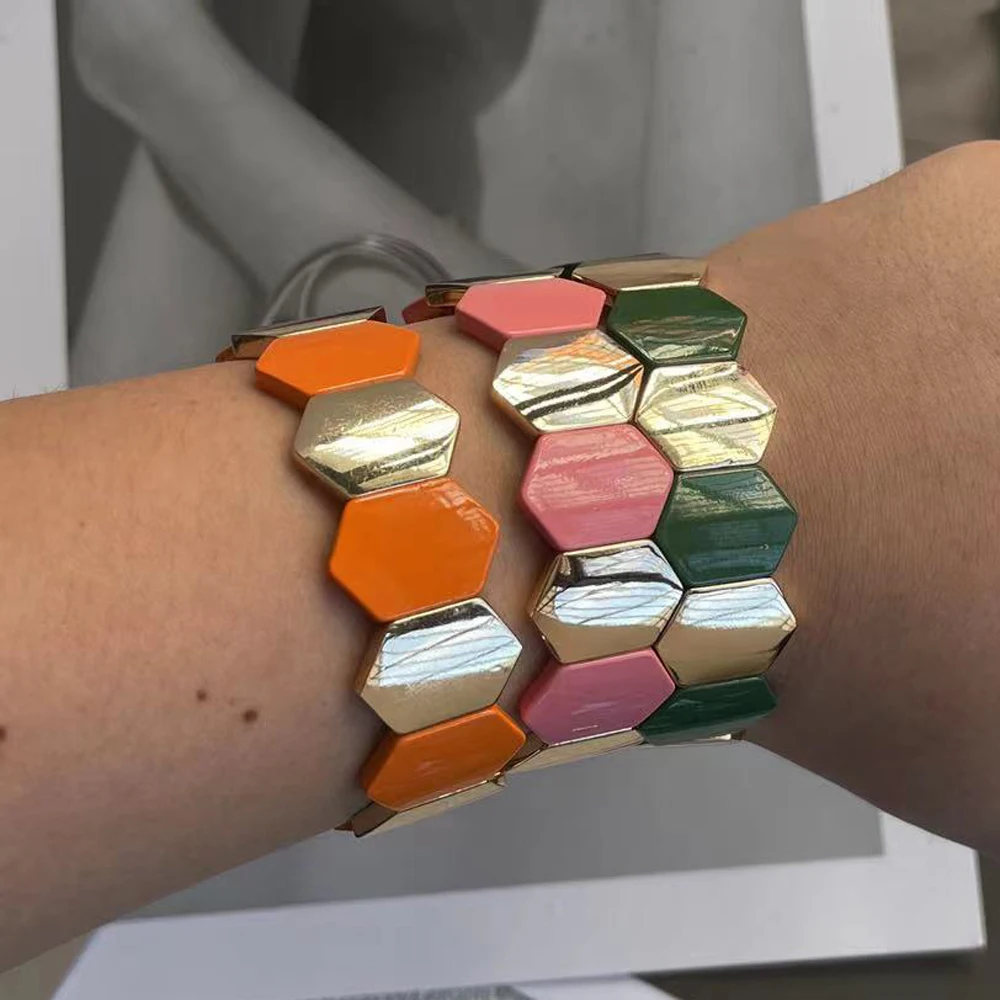 Big Stacked DIY Fashion Enamel Women's Bracelets Bohemian Color Bangle Jewelry Matching Stretch Ladies Bracelet