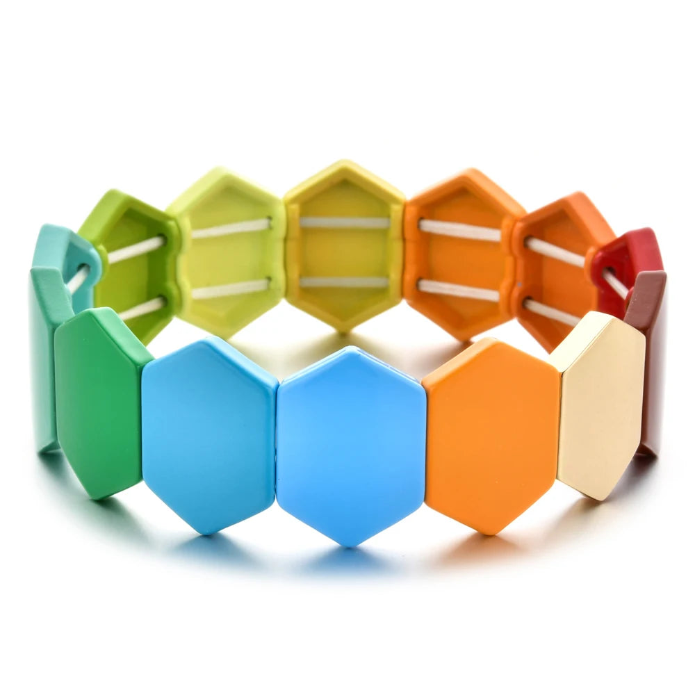 Bohemian Bracelet Handmade Friendship Braided Stackable Enamel Rainbow Tile Bracelet Fashion Street Photography Bangles Dropship