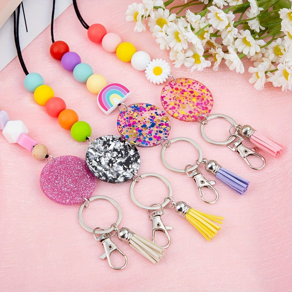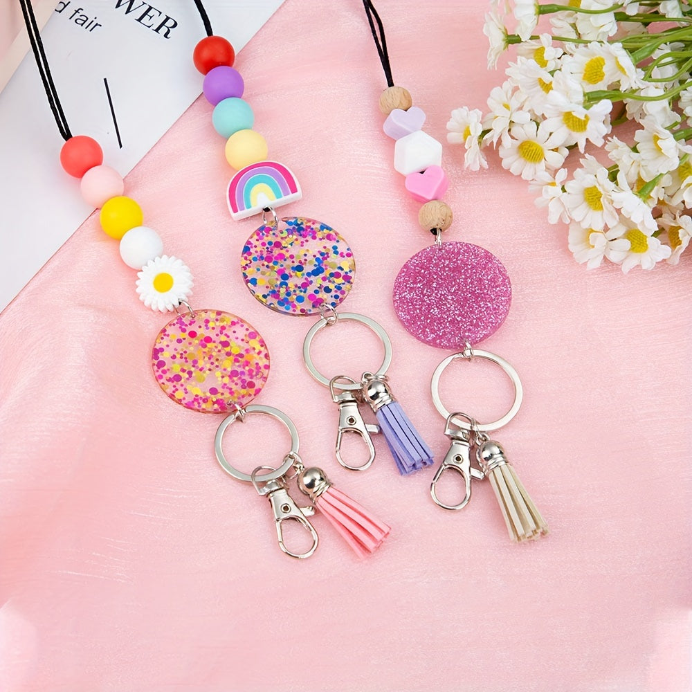 Colorful Glitter Beaded Lanyard With Breakaway Clasp - Perfect For Teachers, Nurses & Office Staff - Includes Id Badge Holder & Keyring