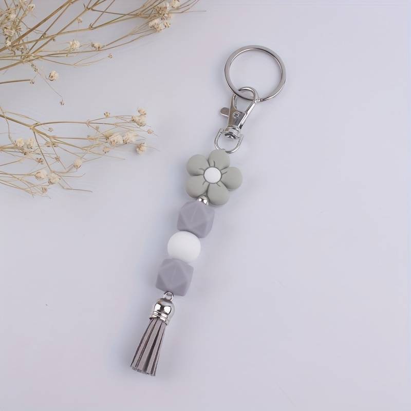 Silicone Beads with Daisy Flower With Tassel Key Ring
