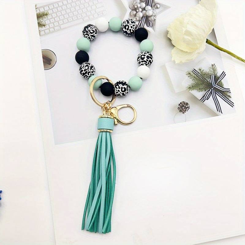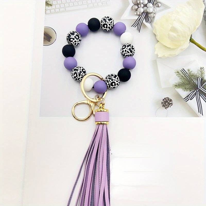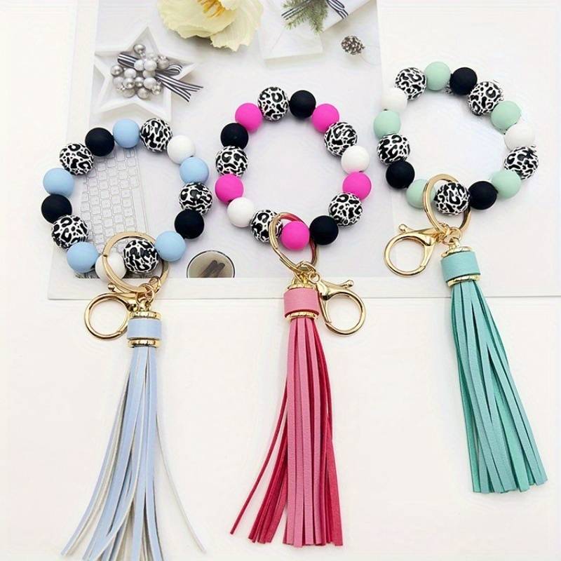 Silicone Beads Bangle Key Chain with Tassels