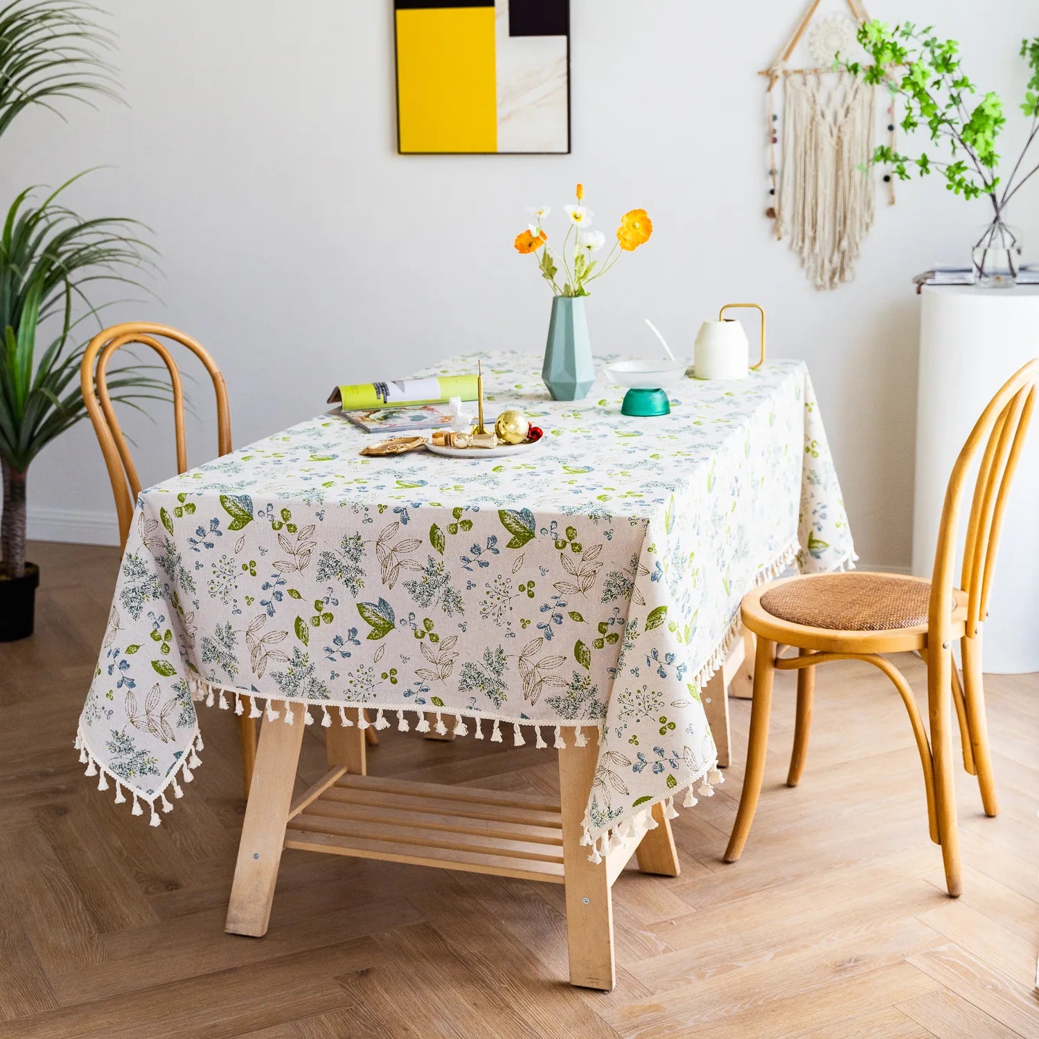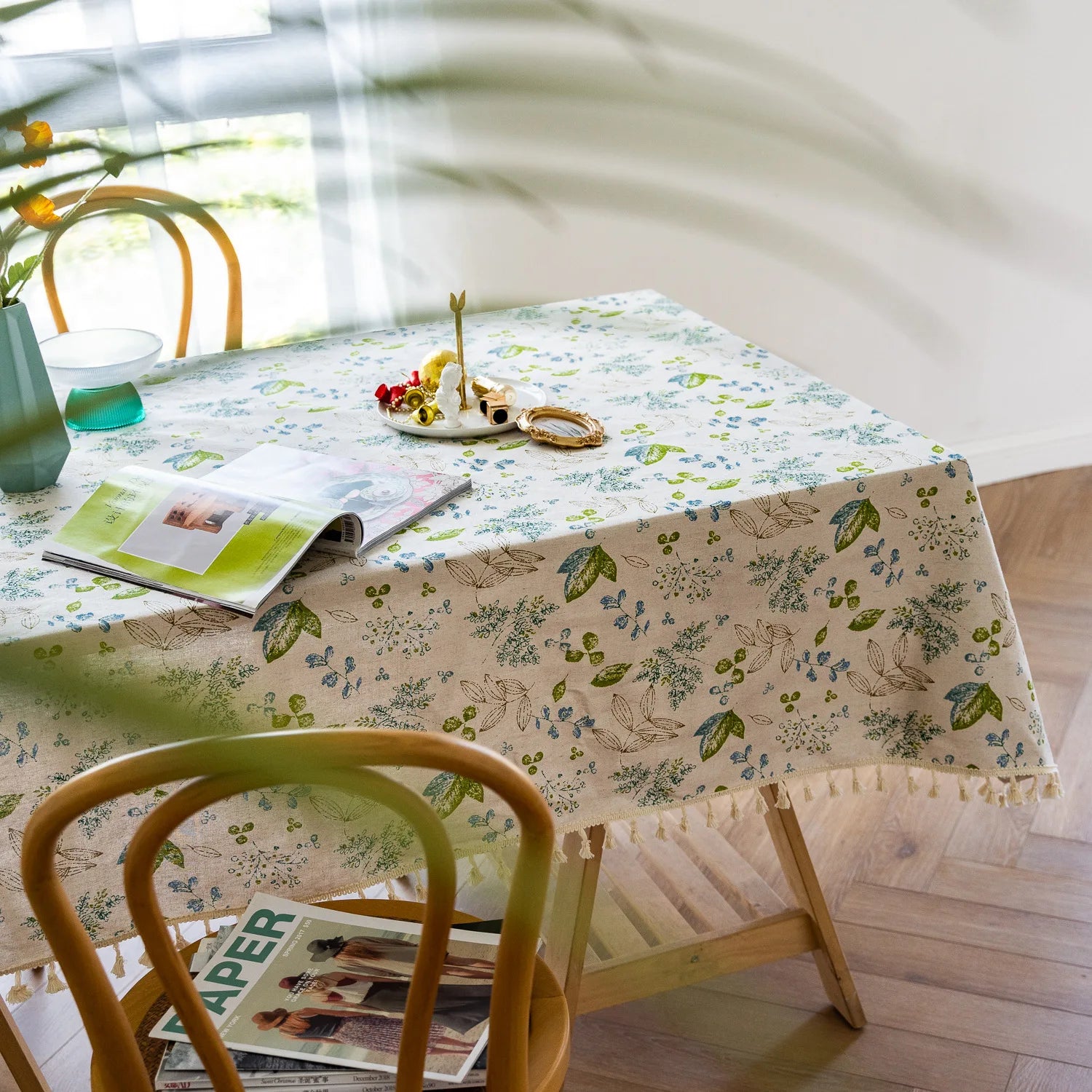 Cotton Linen Floral with Tassel Rectangular Table Cloth