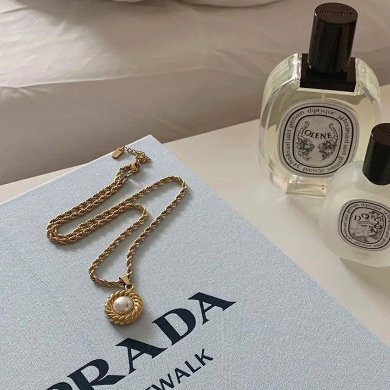 Hemasa Twisted Rope Gold Plated Pearl Pendant Stainless Steel Necklaces Jewellery for Women