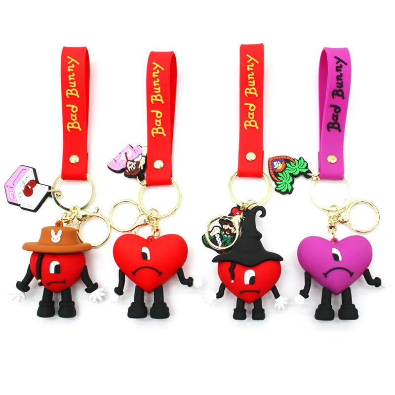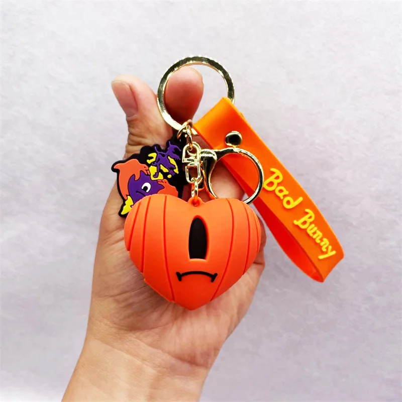 Hemasa Silicone Soft Rubber 3D Rabbit Bad Bunny Keychain Heart Pendant/Halloween Pumpkin Key Pendant Gifts