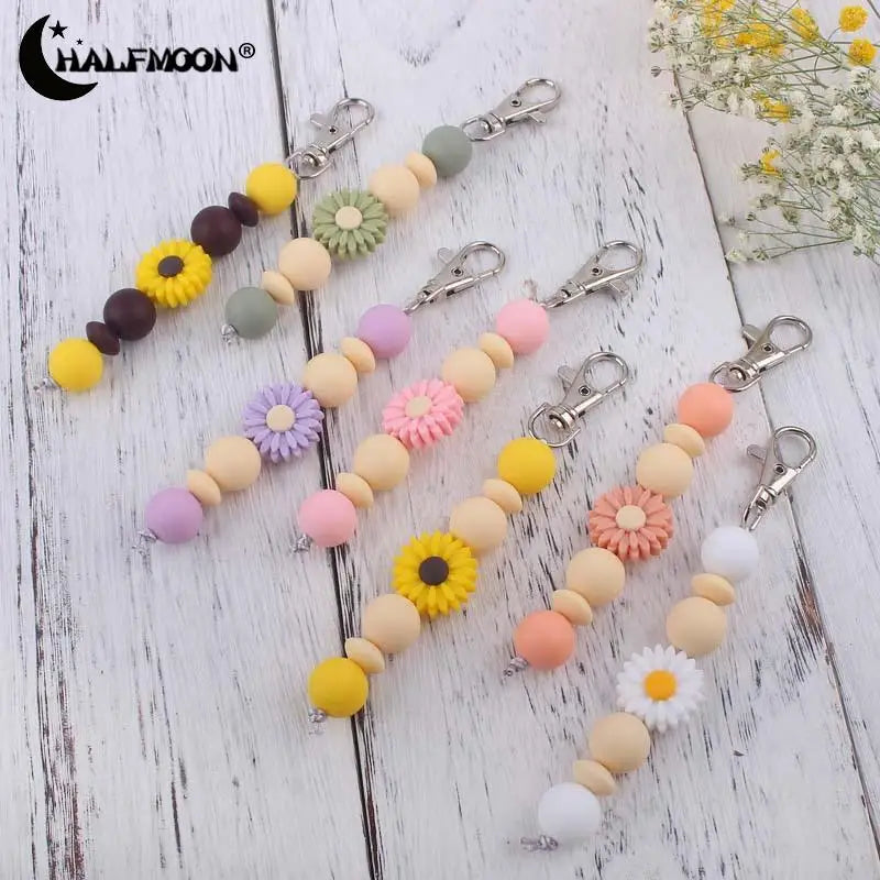 Hemasa Daisy Flower Silicone Beads Keychain for Women /Girls