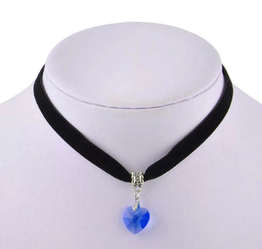 Fashion Velvet Choker Heart Shape Crystal Pendant Choker Necklace