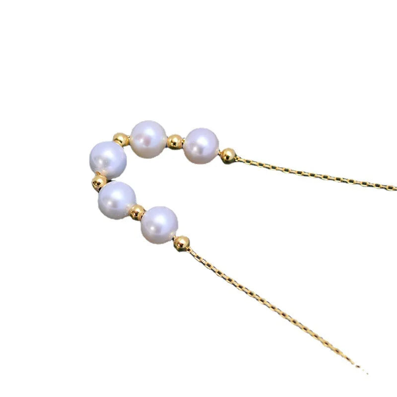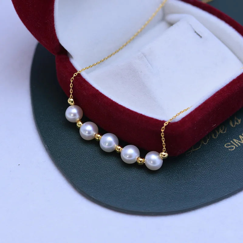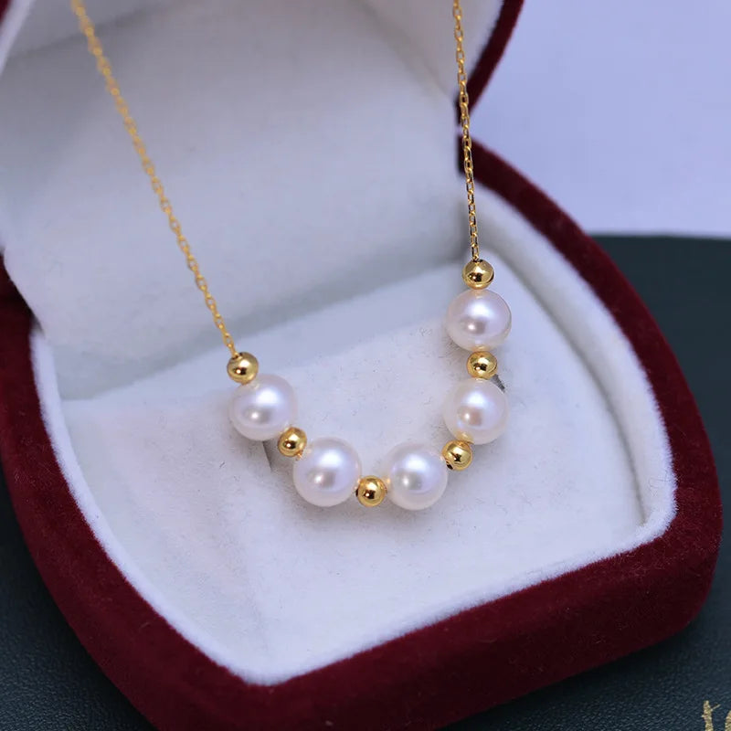 Fresh Water 6-7mm White round Almost Flawless Pearl Pendant S925 Silver Small Gold Spacer Beads Necklace