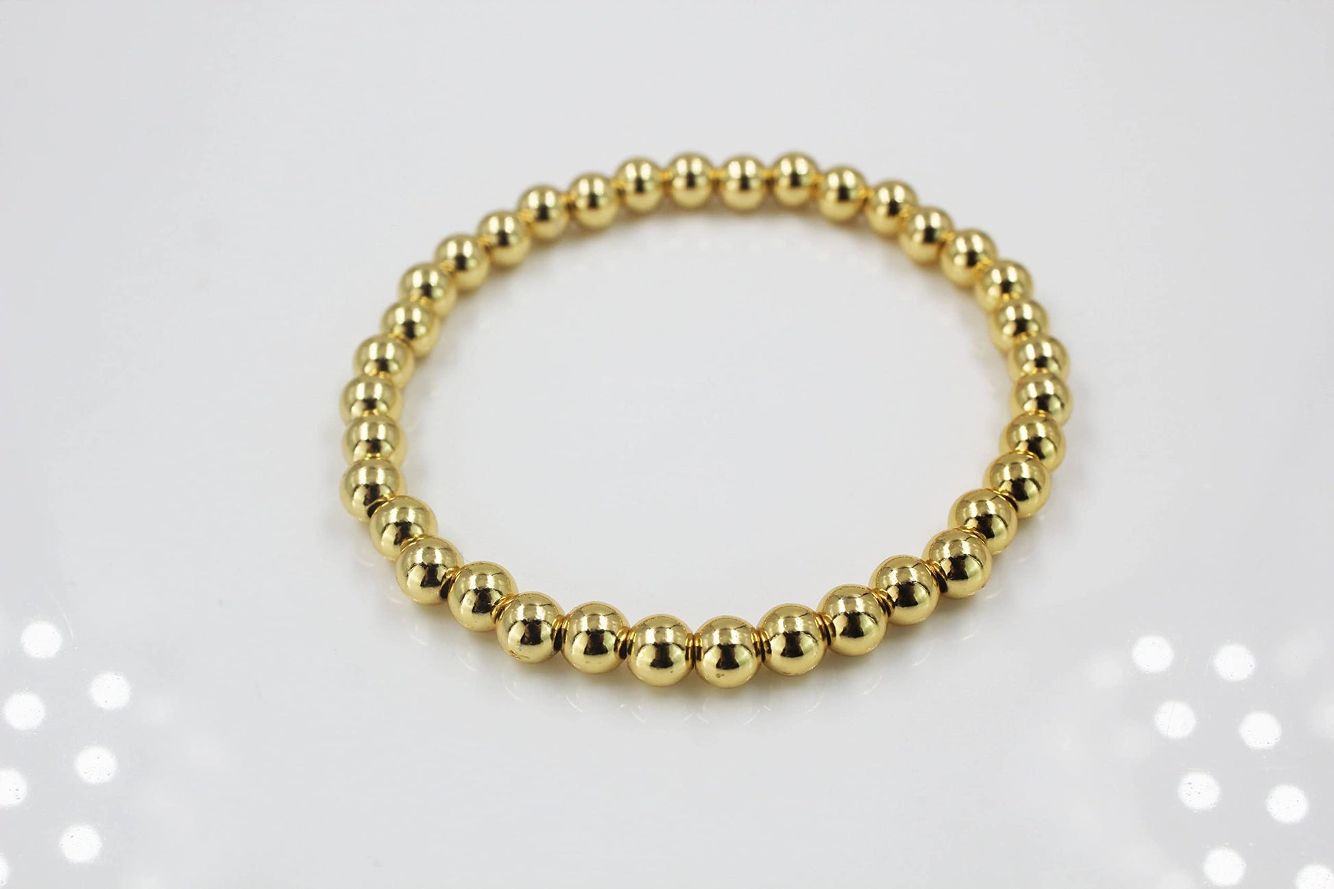 Gold and silver colour beads stretchable bracelet (set of 2)