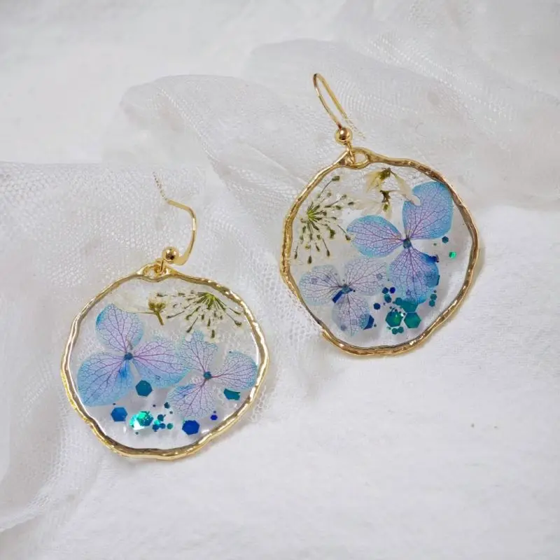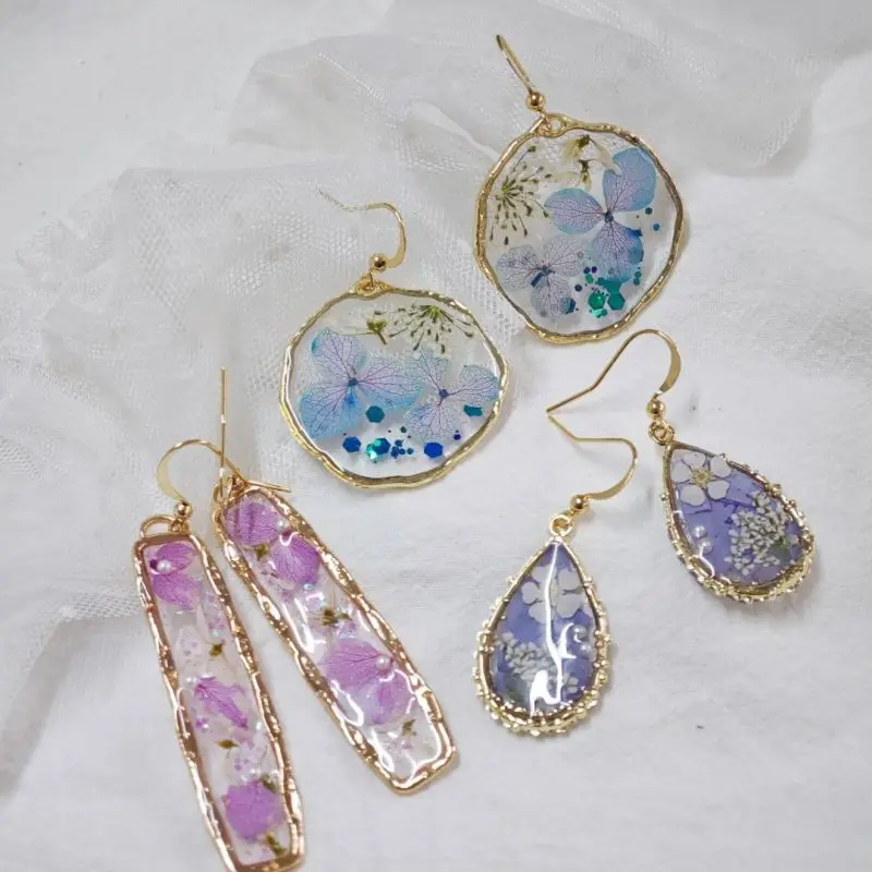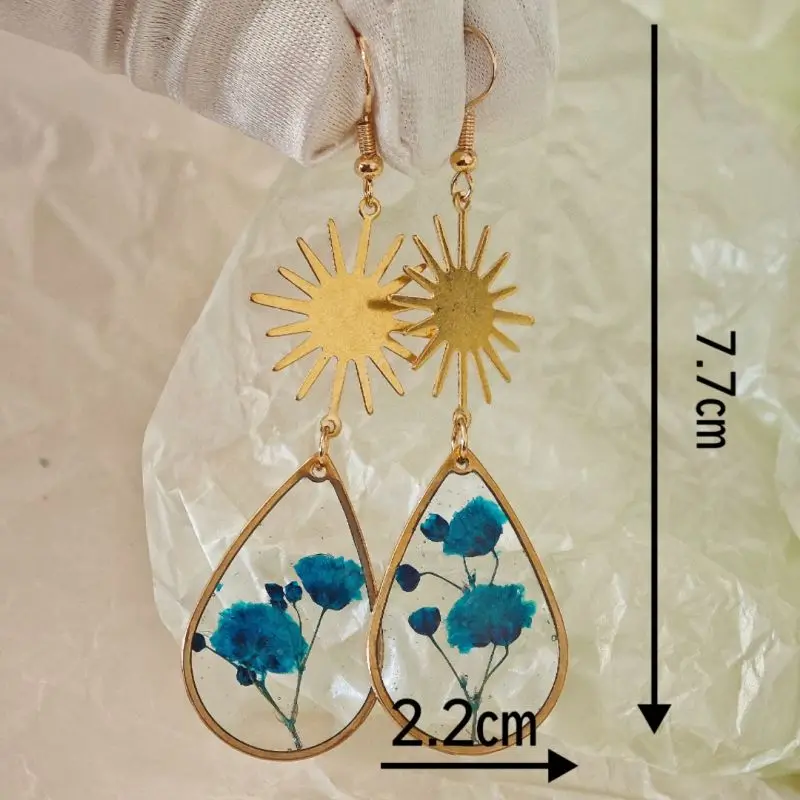 High Quality Epoxy Resin Pressed Flower Earrings Women Unique Design Elegant Dried Earrings Natural Statement Jewelry 2024 New