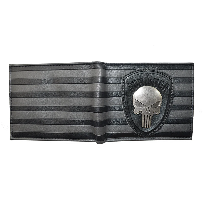 High Quality Metal Design Comics Marvel Wallet Marvel Hero Deadpool Punisher Thor Purse PU Leather with Zipper Coin Pocket