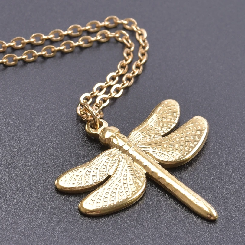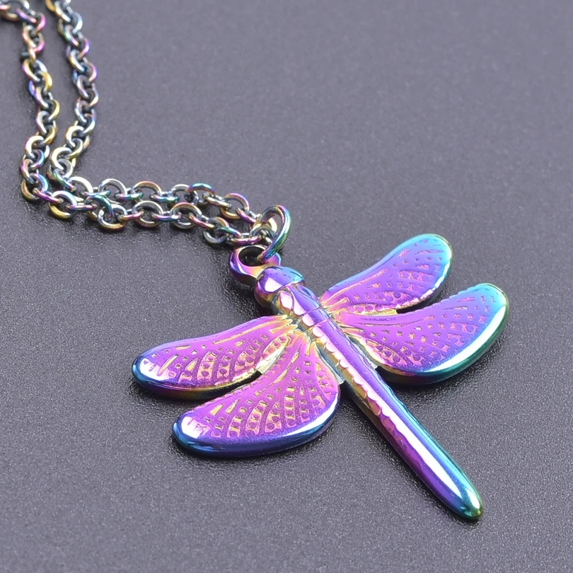 Hot Sale Dragonfly Rainbow Charms Stainless Stee Pendant Punk Necklace for Women/Men Choker Long Chain Female Jewelry Gifts