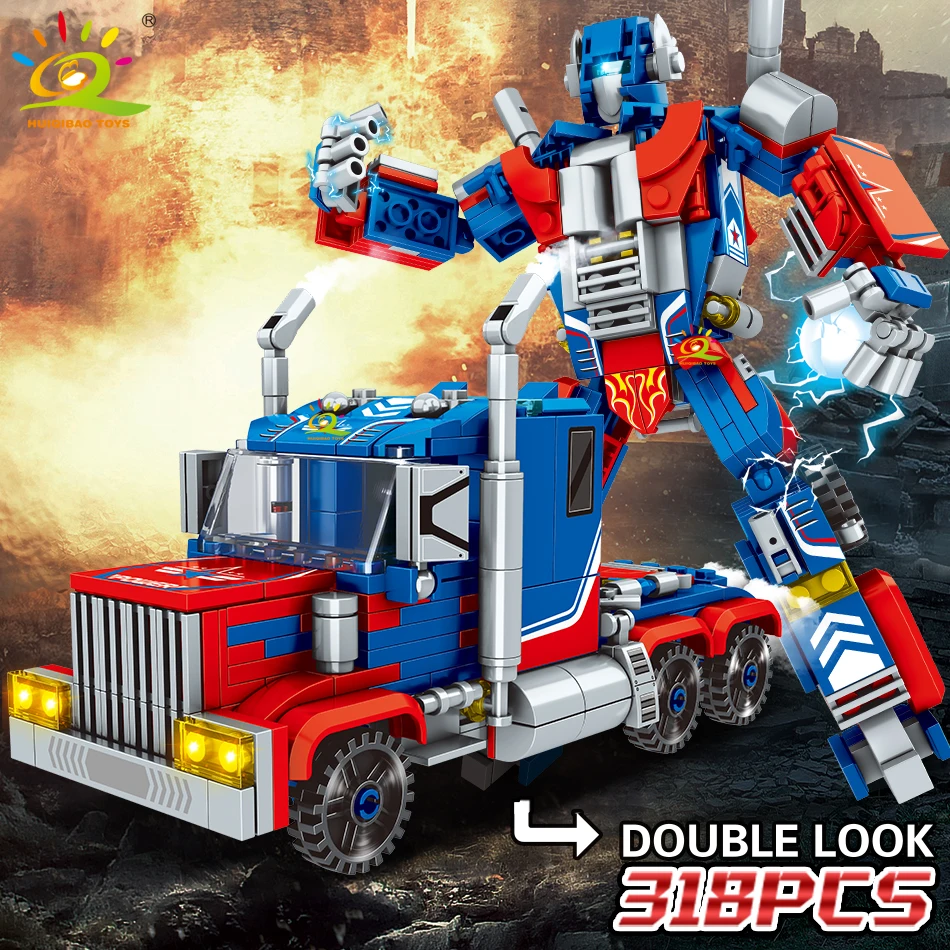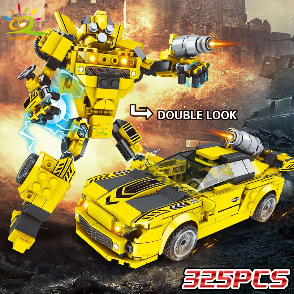 HUIQIBAO City Car Robot Man Building Blocks Transformation Speed Champions Deformation Truck Bricks Set Children Toys Kids Boy