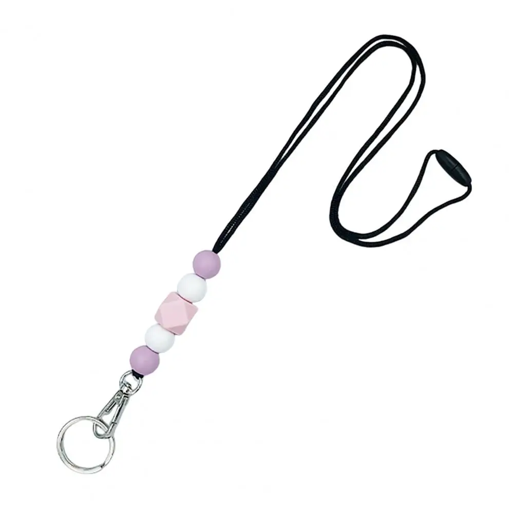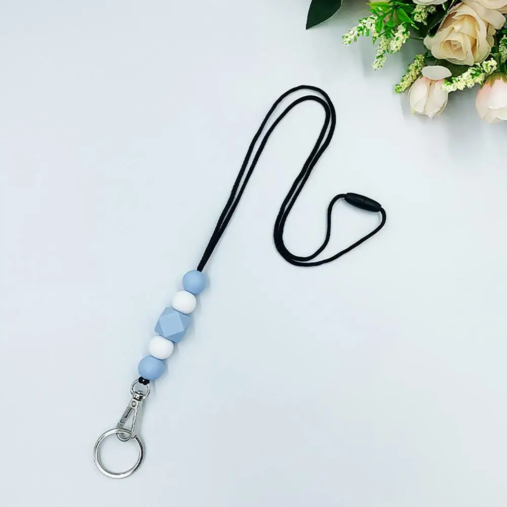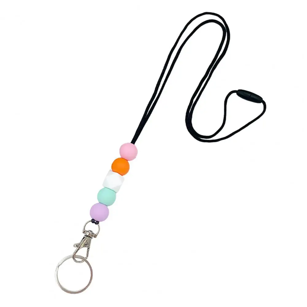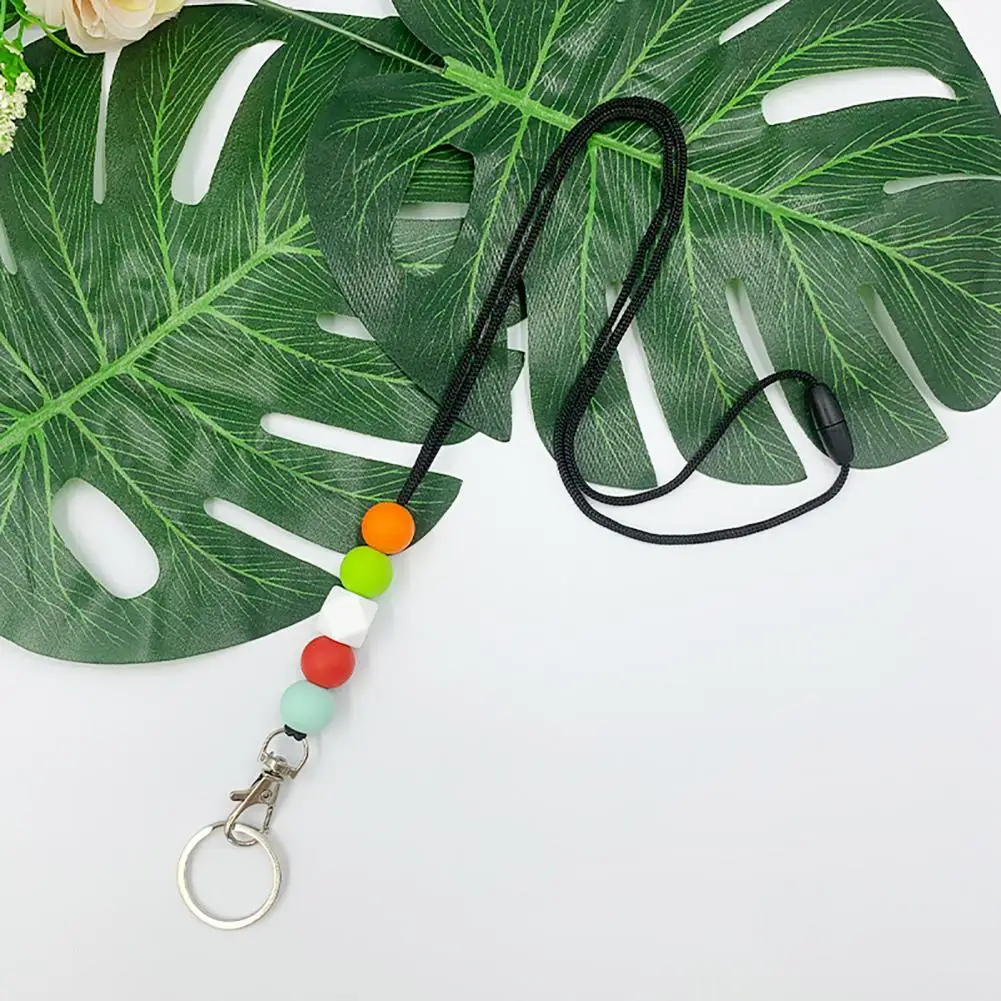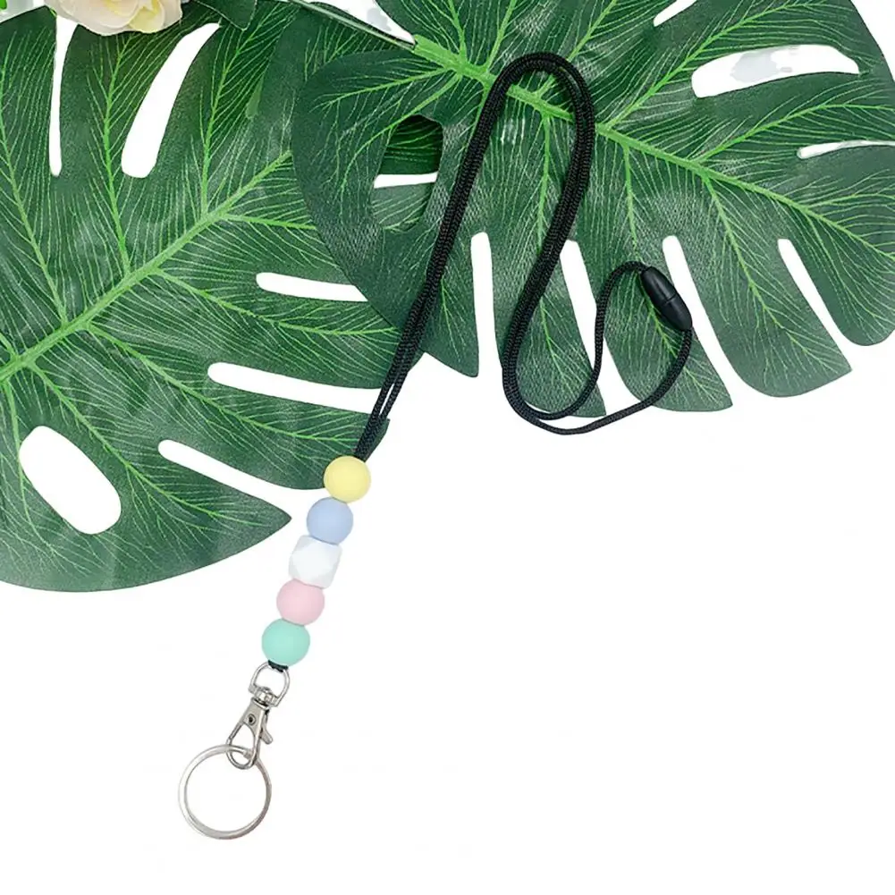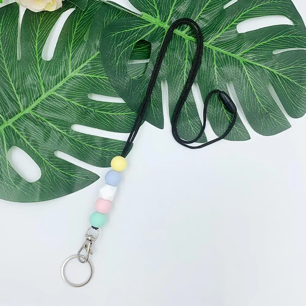 ID Badge Beaded Lanyard Adjustable Length Non-Rusting Reusable Silicone Beaded Breakaway Lanyard with Keychain
