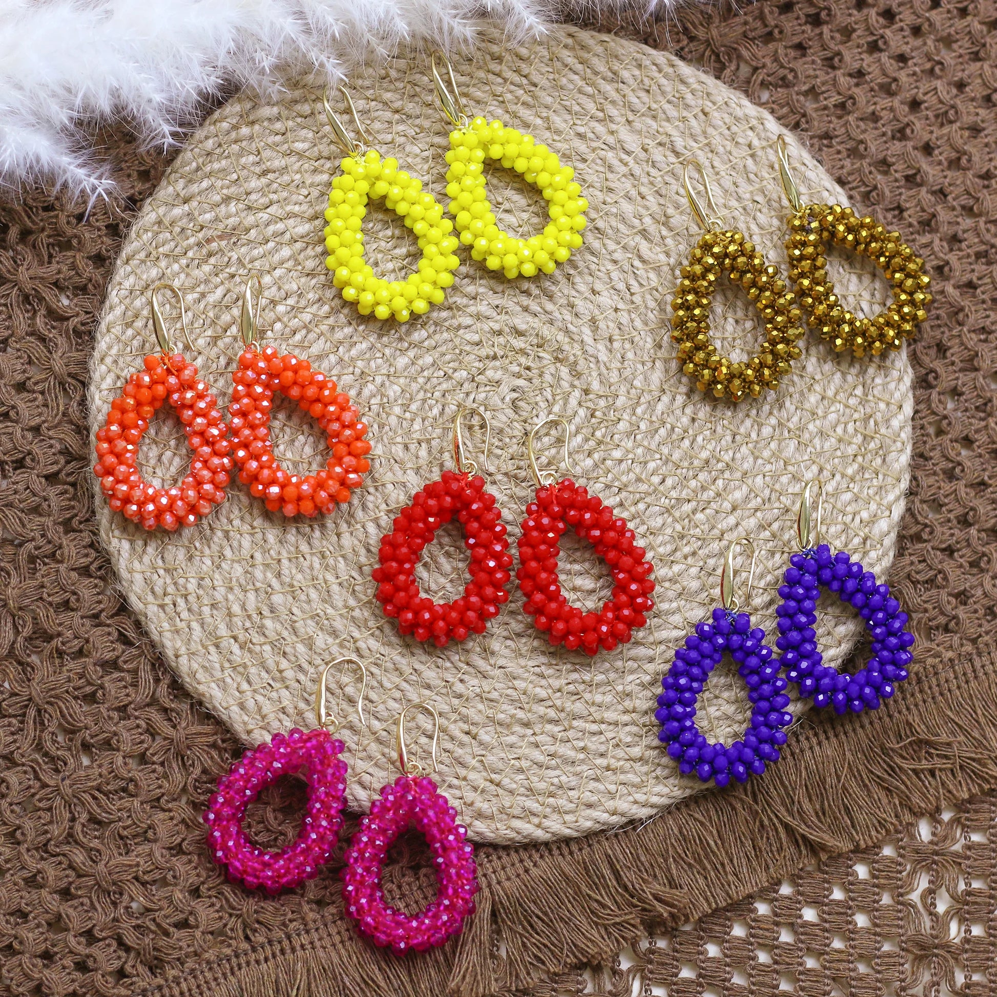 INKDEW Small Earrings National Flag Colors Water Drop Earrings for Women Handmade Beads Crystal Earrings Gift Jewelry EA124