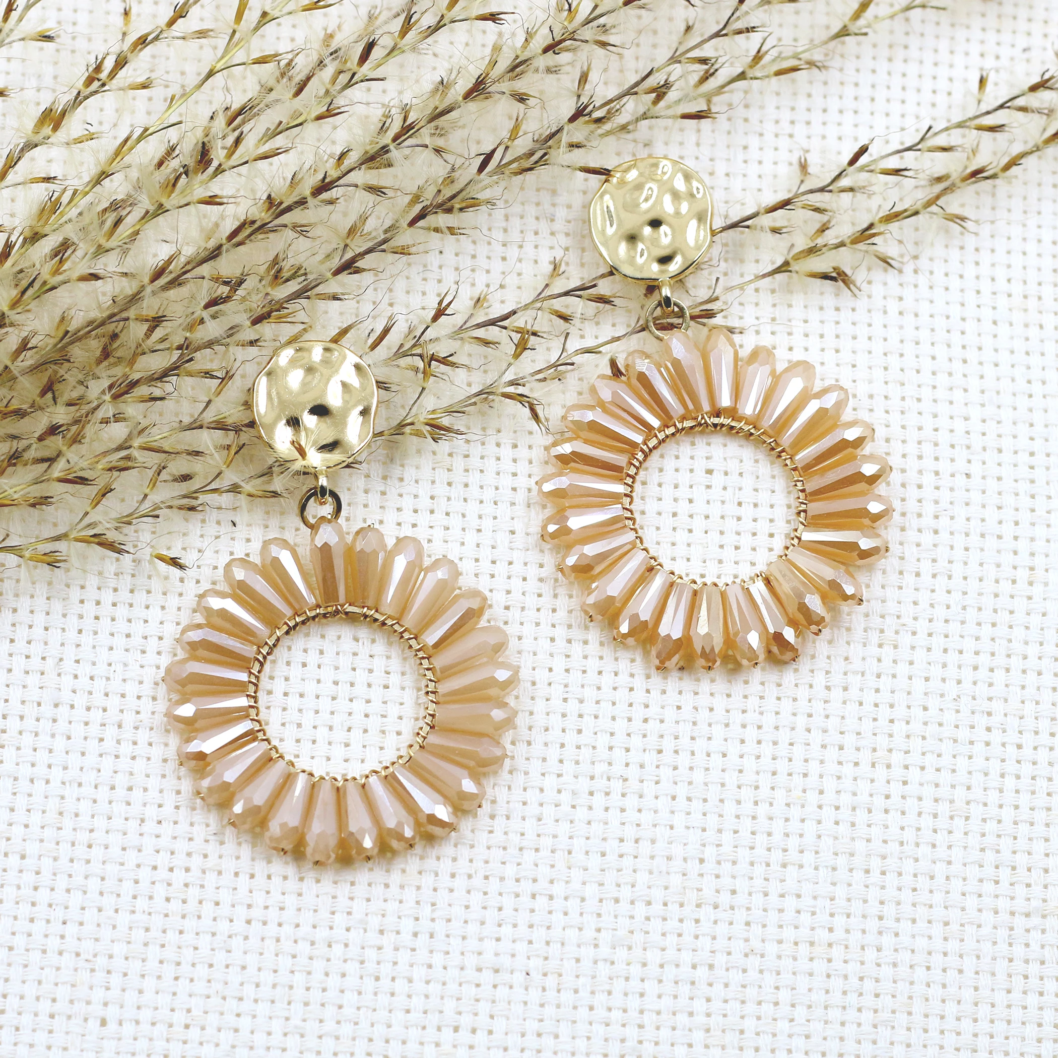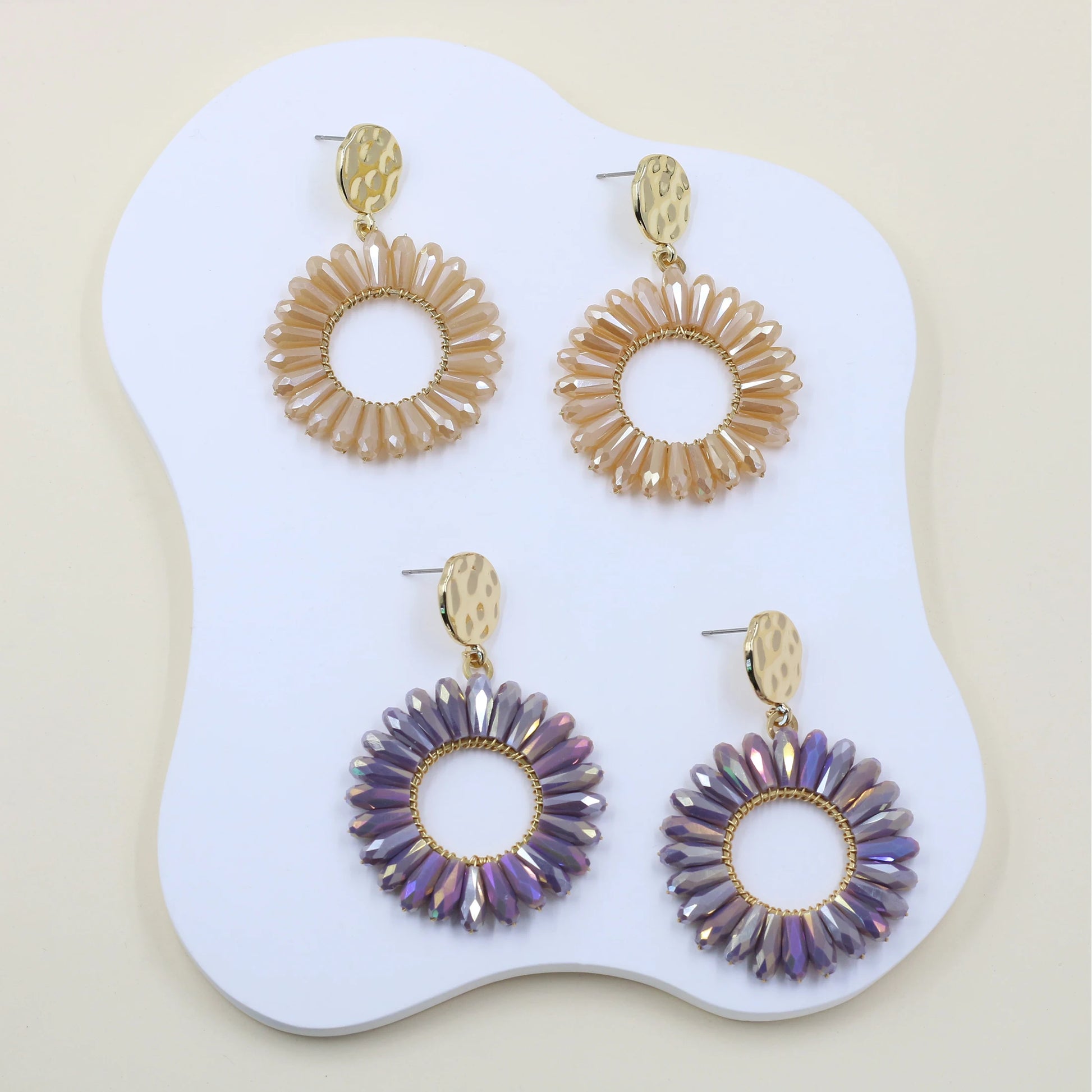INKDEW Sun Flower Round Drop Earrings for Women Big Long Earrings Handmade Crystal Faceted Beads Earrings Jewelry Gift EA113