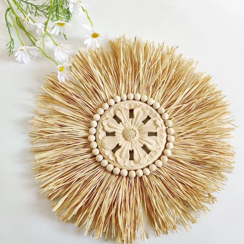 INS Nordic Home Decoration Senyan Raffia Straw Braided Ring Creative Pendant Children's Clothing Store Decora Photography Props