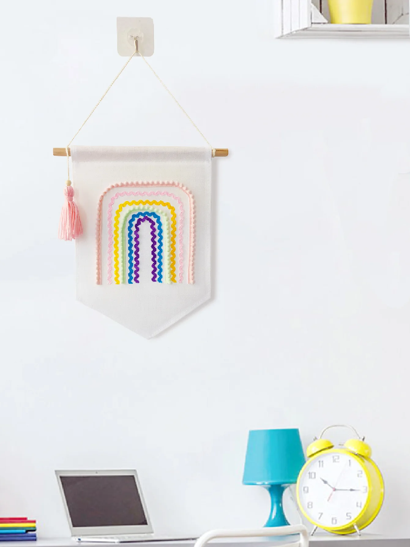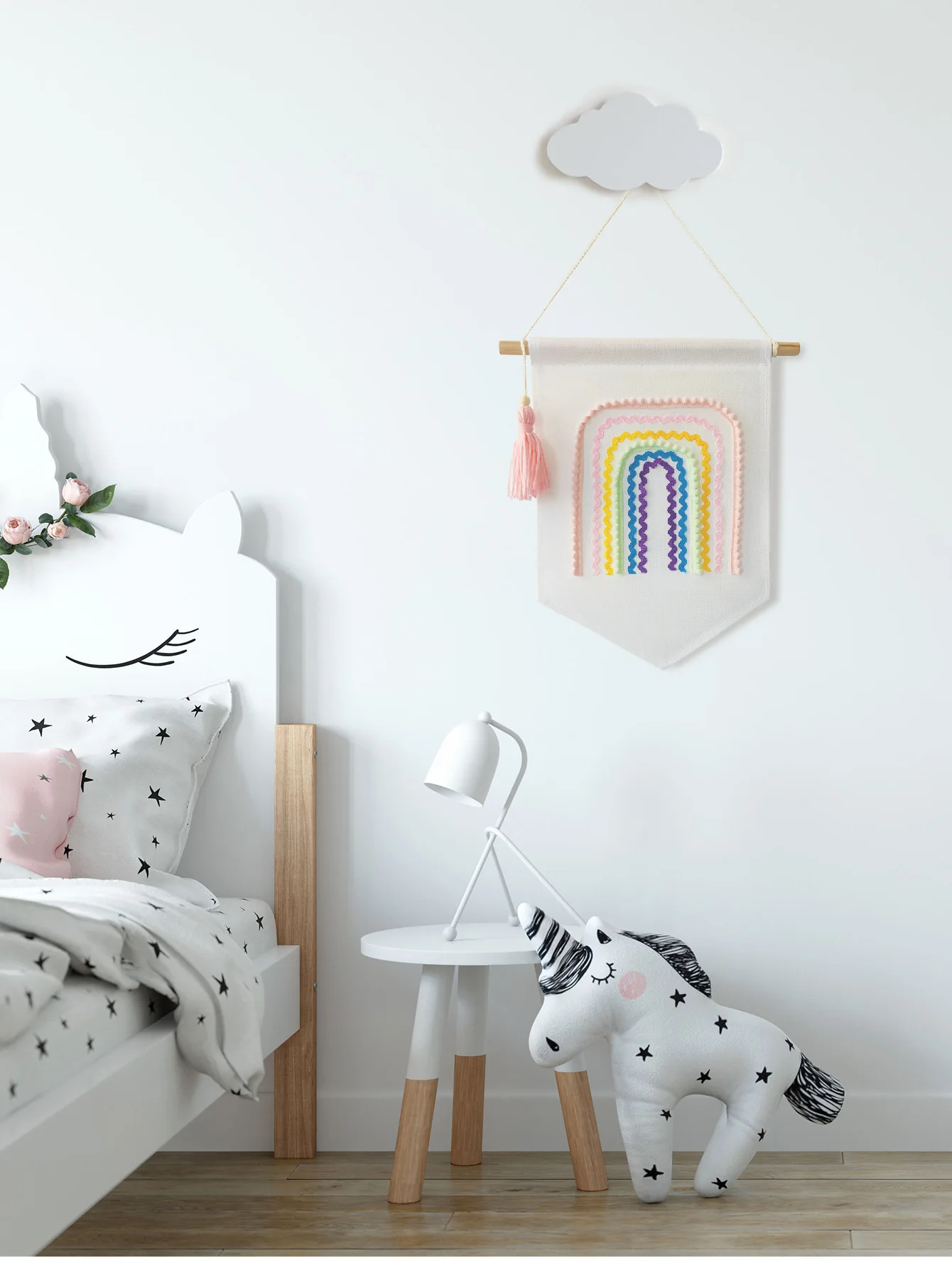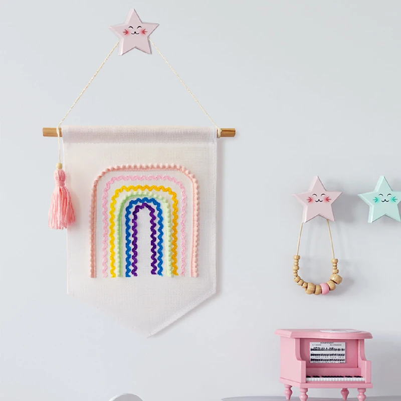 INS Wall Hanging Rainbow Tapestry with Tassel Creative Nordic Flags Baby Nursery Wall Pendant Children Room Bedroom DecorationMaterial: Non-woven Fabric