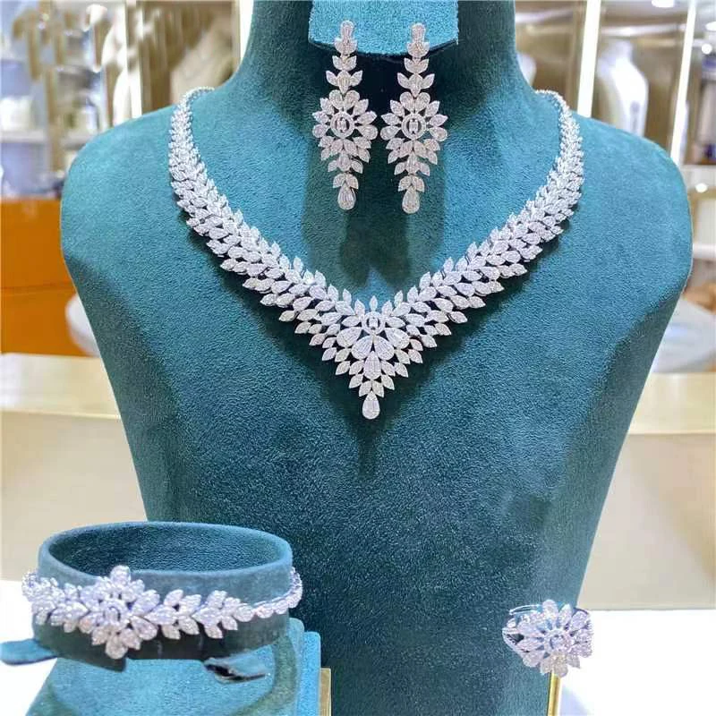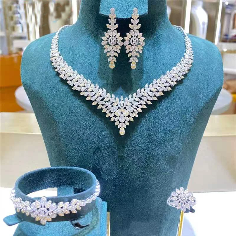 janekelly 4pcs Bridal Zirconia Full Jewelry Sets For Women Party, Luxury Dubai Nigeria CZ Crystal Wedding Jewelry Sets