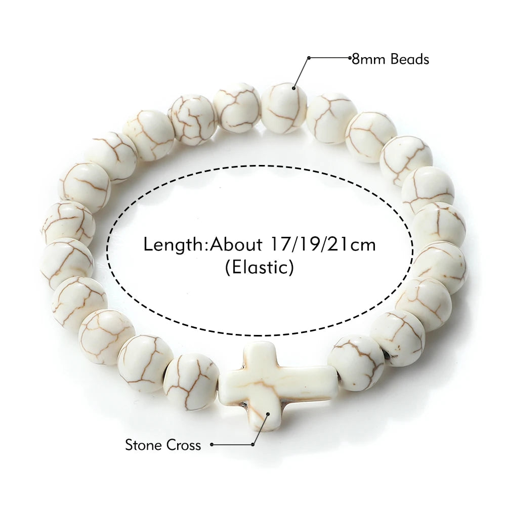 Jesus Cross Men Bracelet Natural Stone Black Lava Turquoises Onyx Beads Charm Bracelets Women Yoga Bangles Prayer Jewelry Gifts