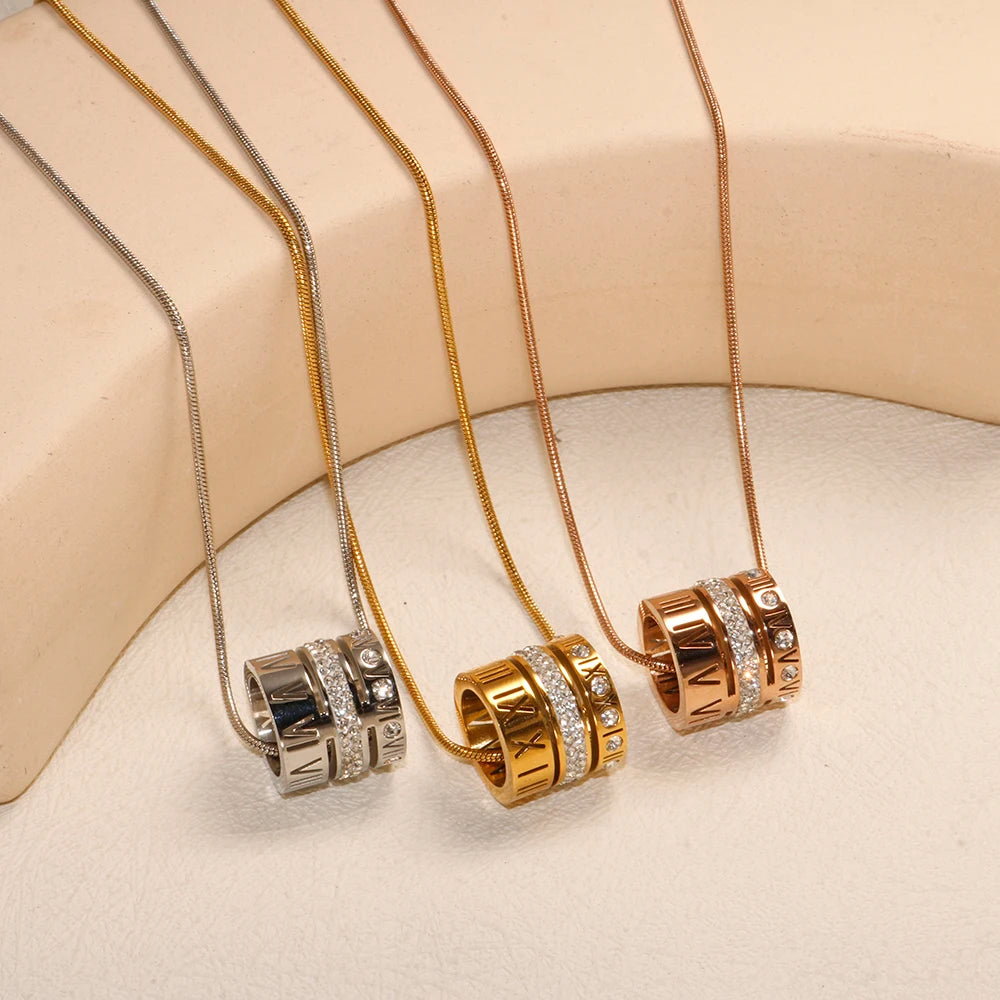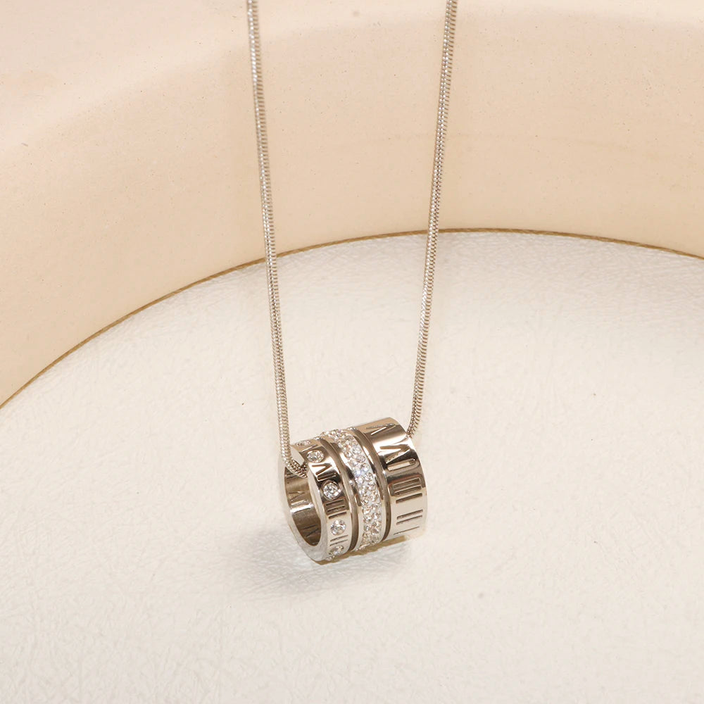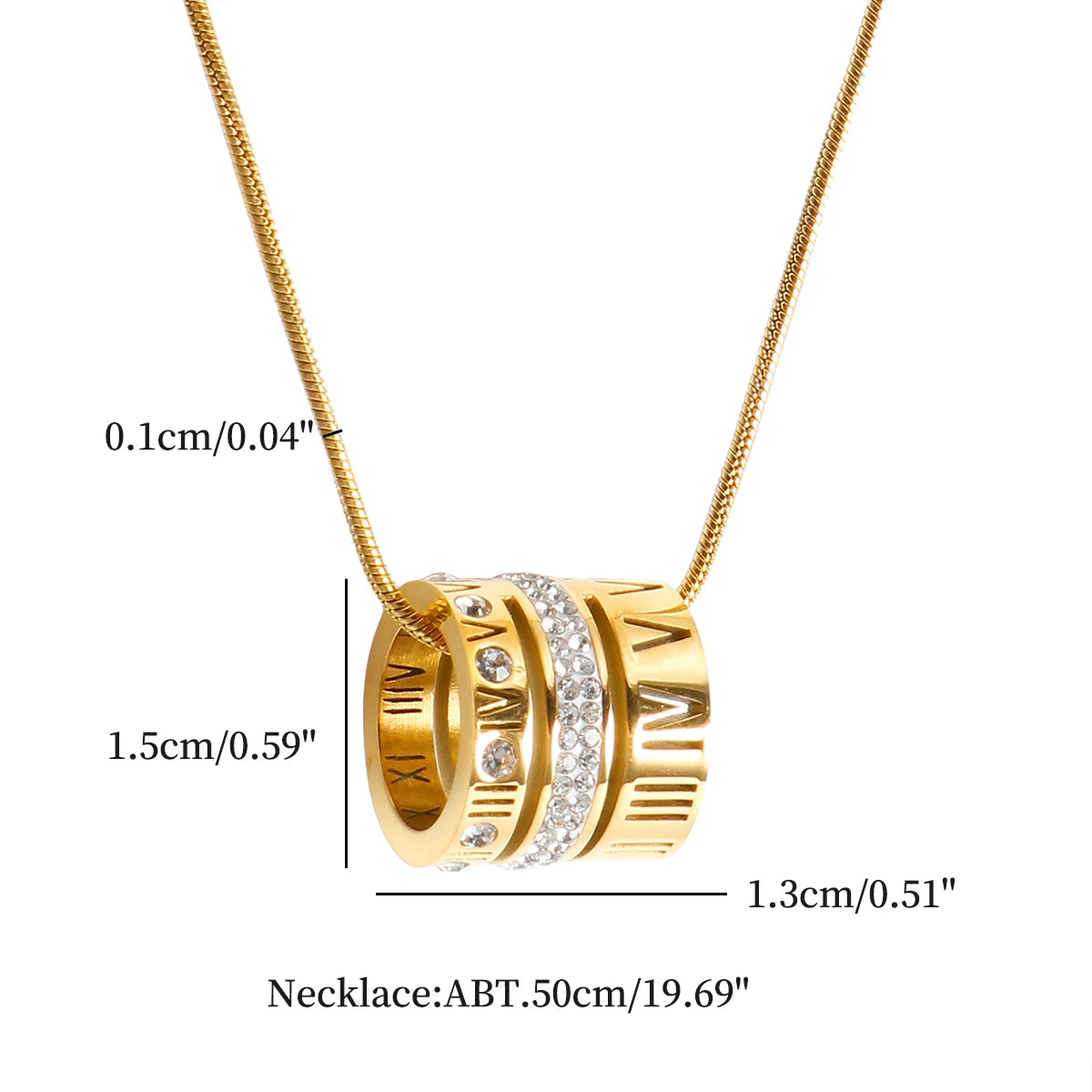Hemasa Zircon Three Layers Pendant Necklace Stainless Steel Necklaces for Woman