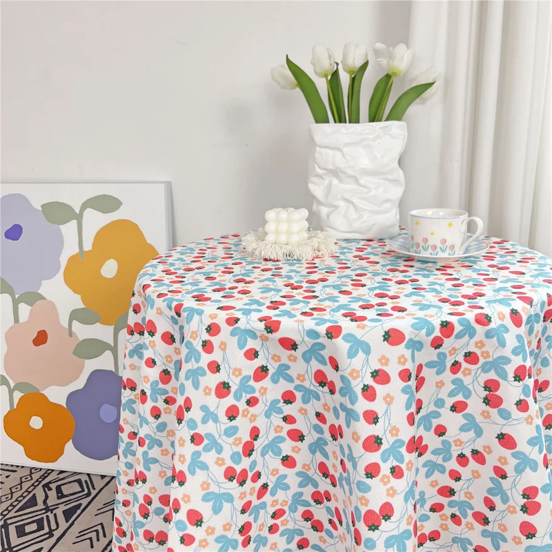 Korean Style Round Lattice Flower Tablecloth Floral Table Cloth for Dining Table Tea Coffee Table Cover Picnic Kitchen Decor