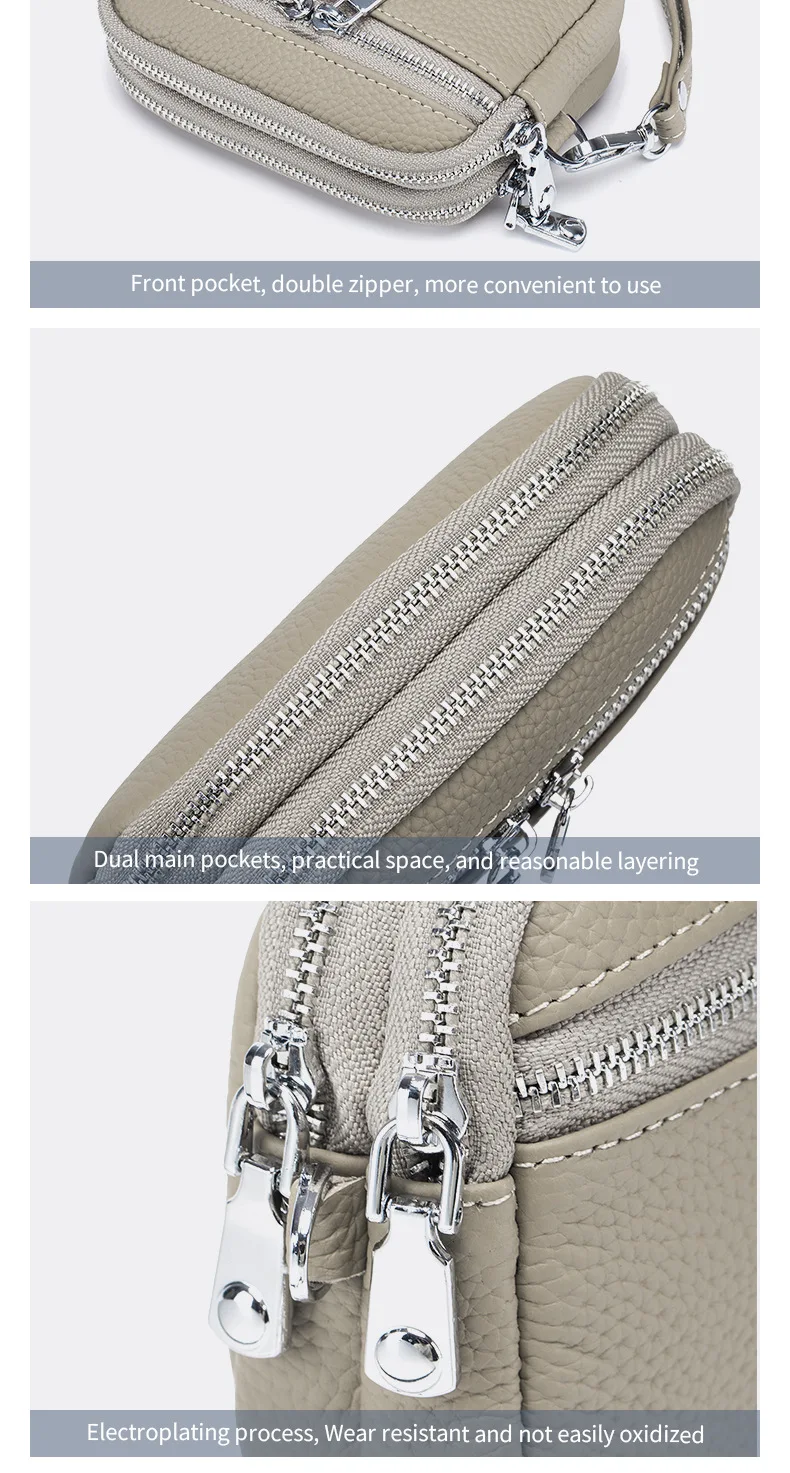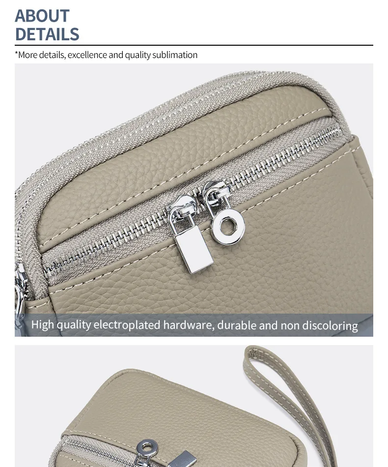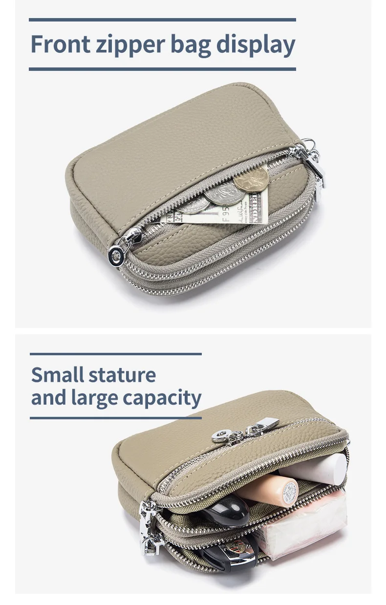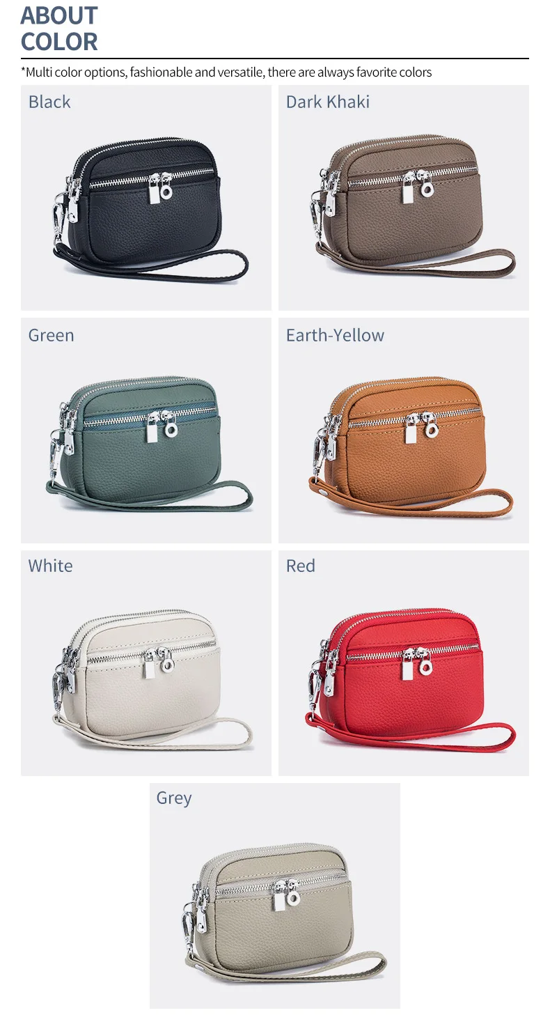 Large Capacity Women's Wallets Genuine Leather Short Coin Purse Leather Zipper Multi-function Mini Clutch Bag with Wrist Strap