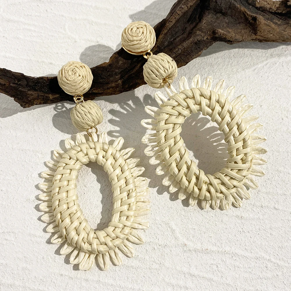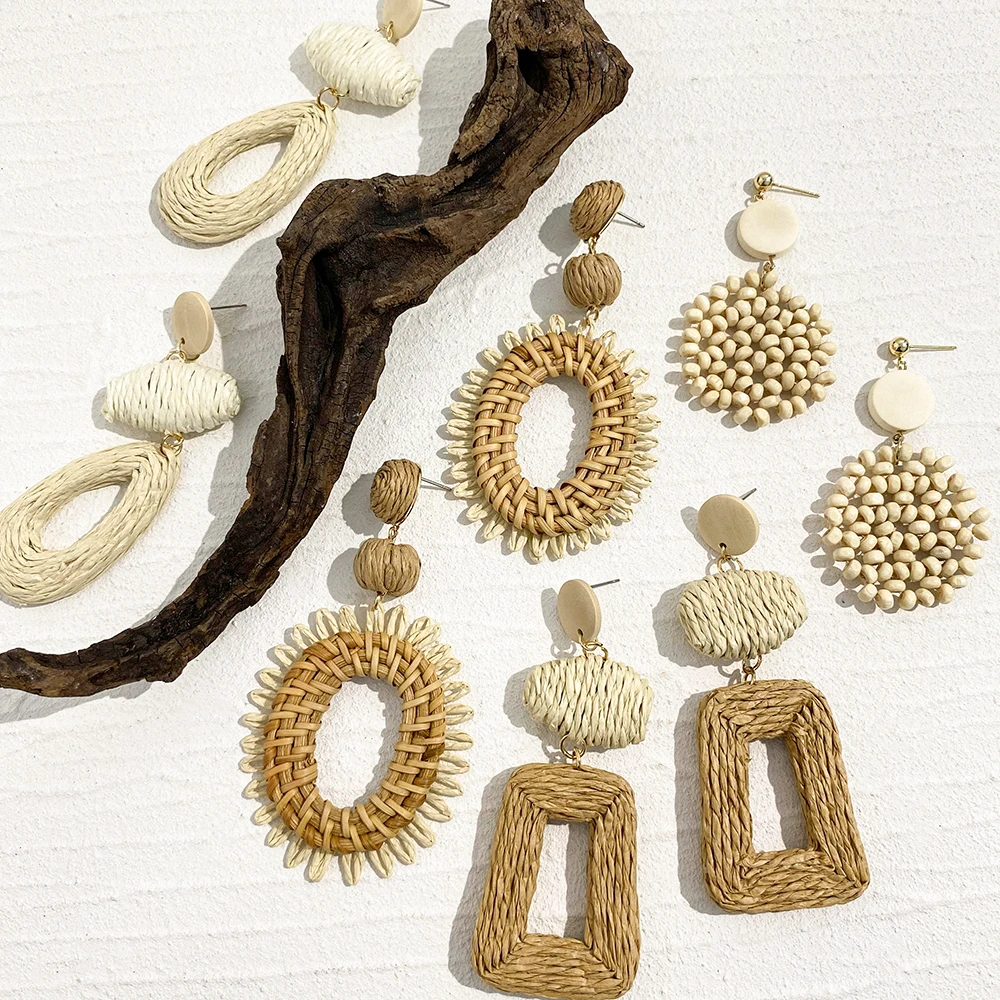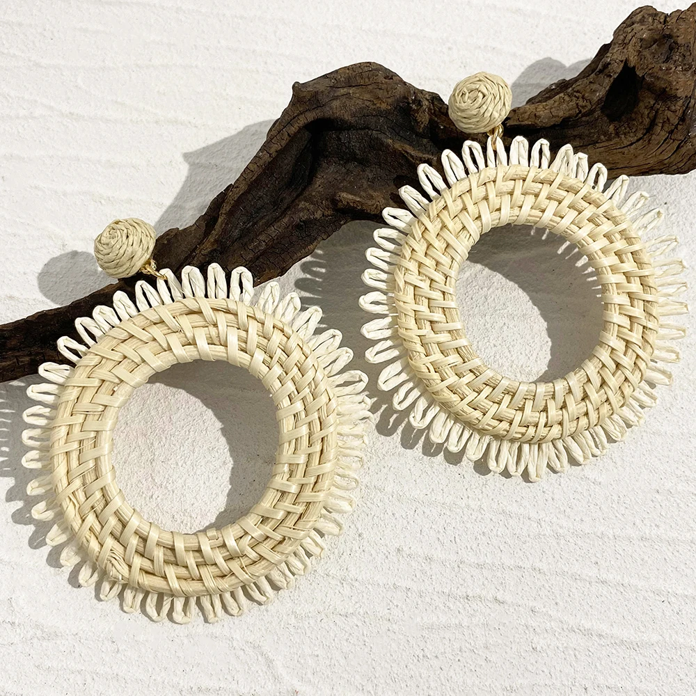 Lifefontier Handmade Woven Raffia Geometric Drop Earrings For Women Oversize Flower Beach Dangle Earring Jewelry Wholesale 2023