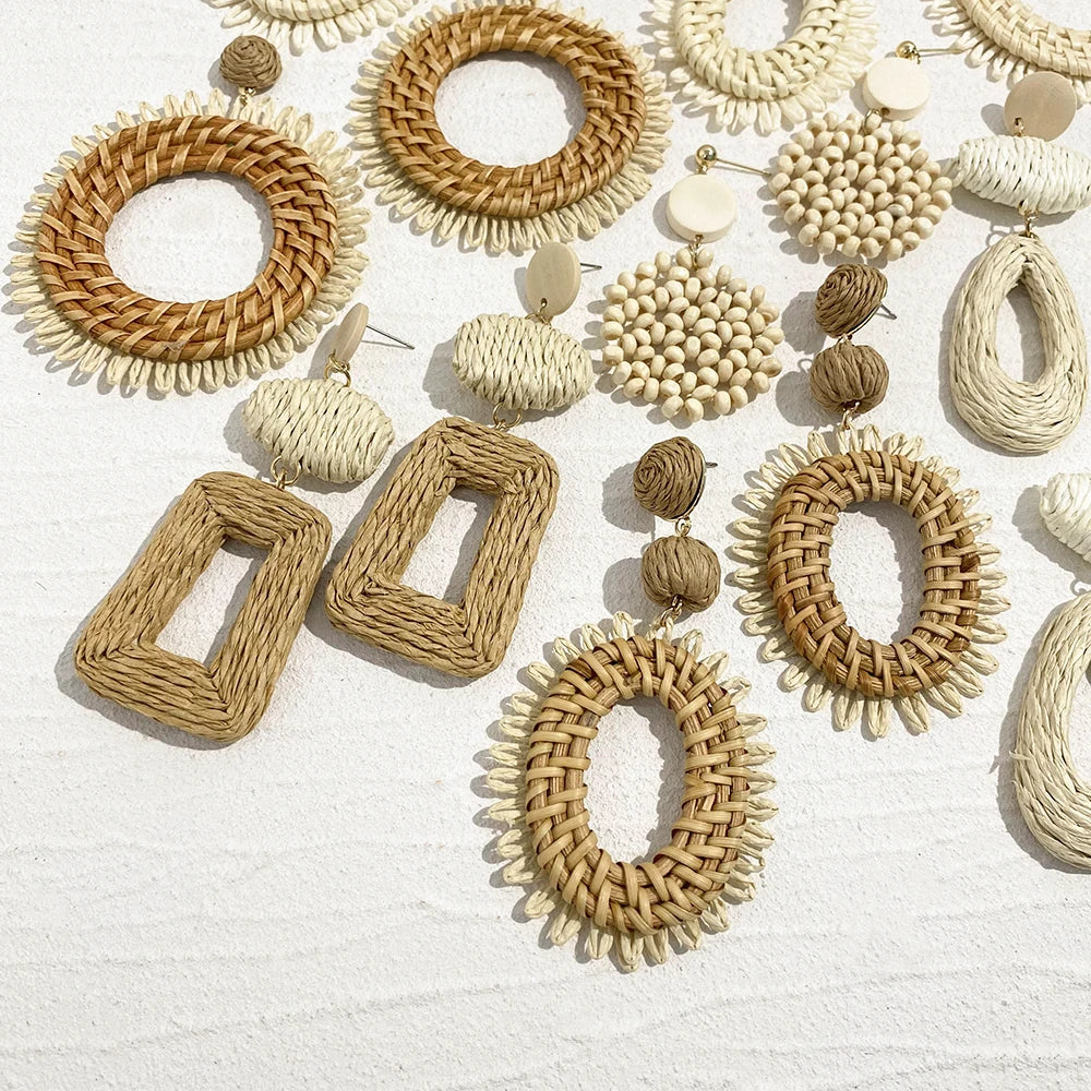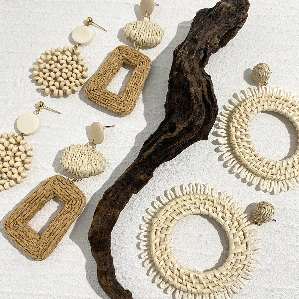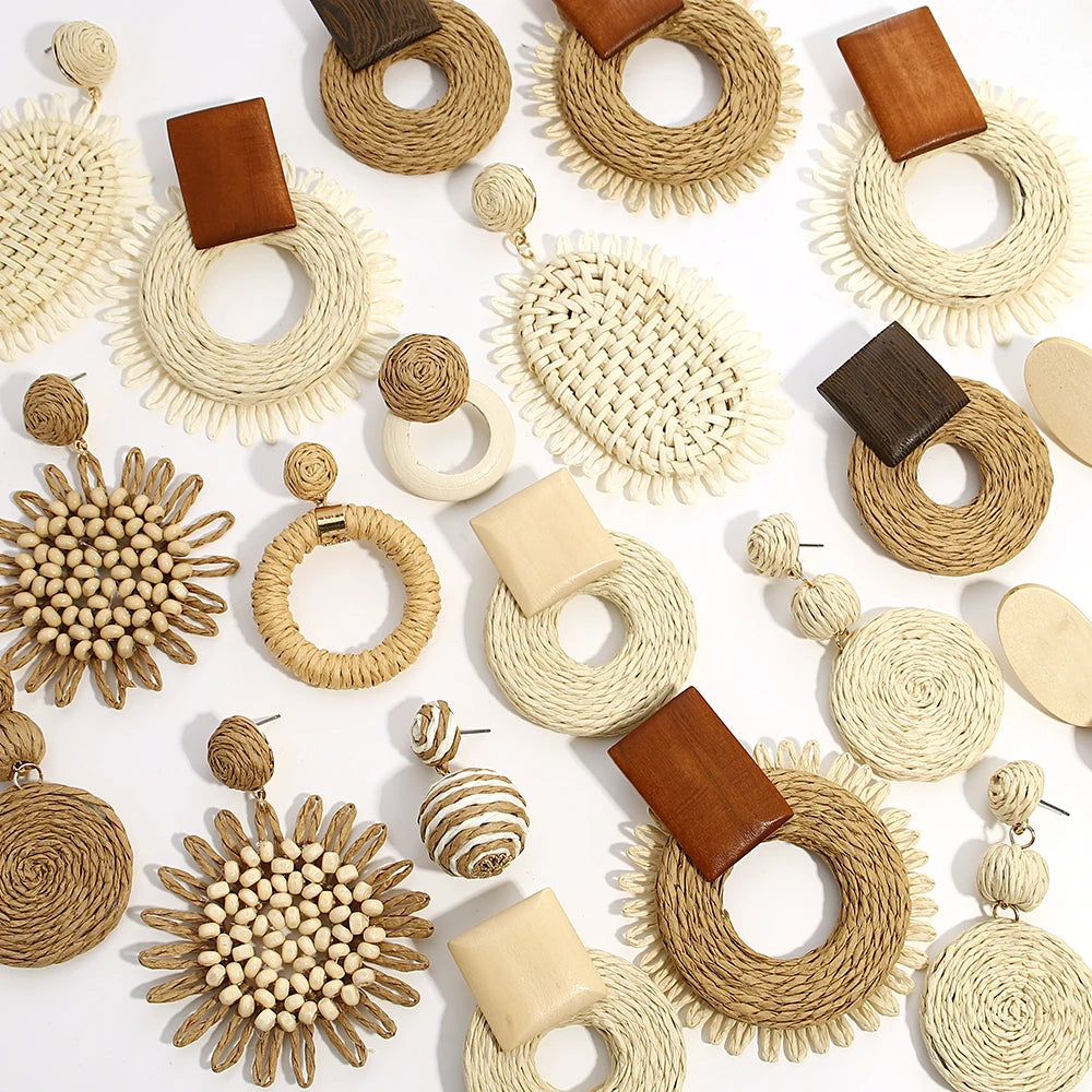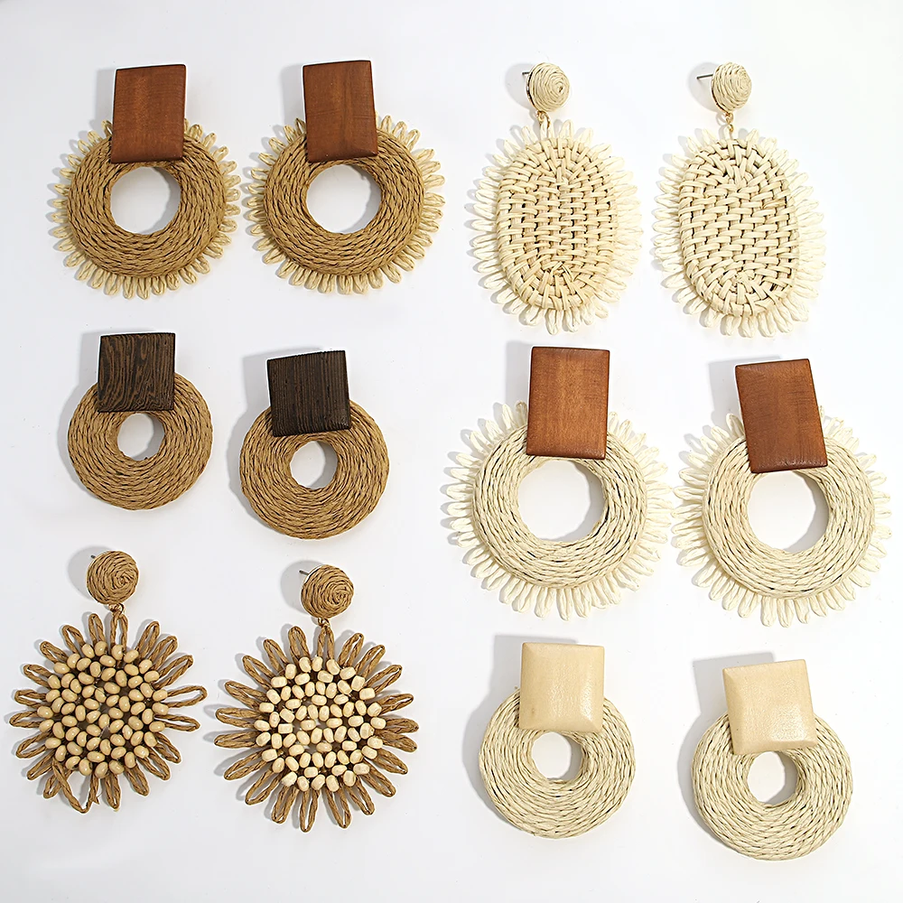 Lifefontier Handmade Woven Raffia Geometric Drop Earrings For Women Oversize Flower Beach Dangle Earring Jewelry Wholesale 2023