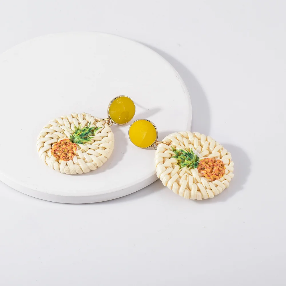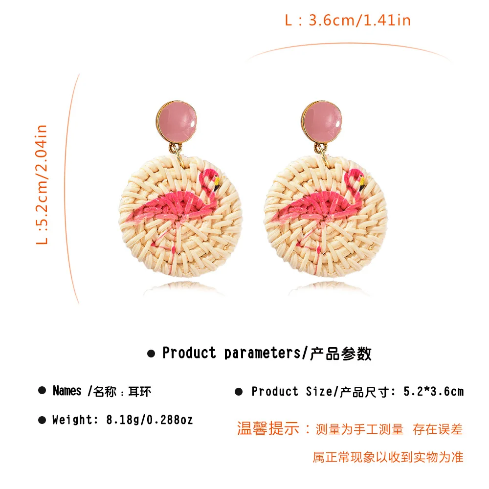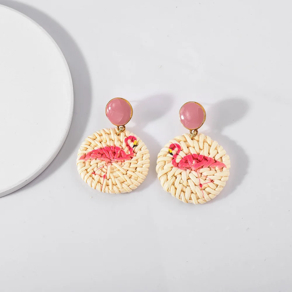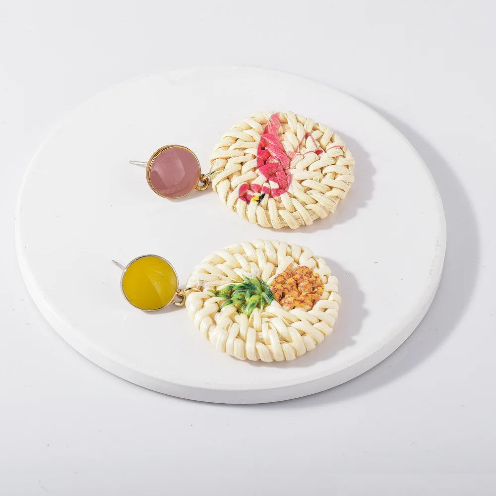 Lost Lady Handmade Straw Rattan Earrings For Women Fashion Pineapple Flamingo Print Earrings Fashion Jewelry Wholesale Outlet