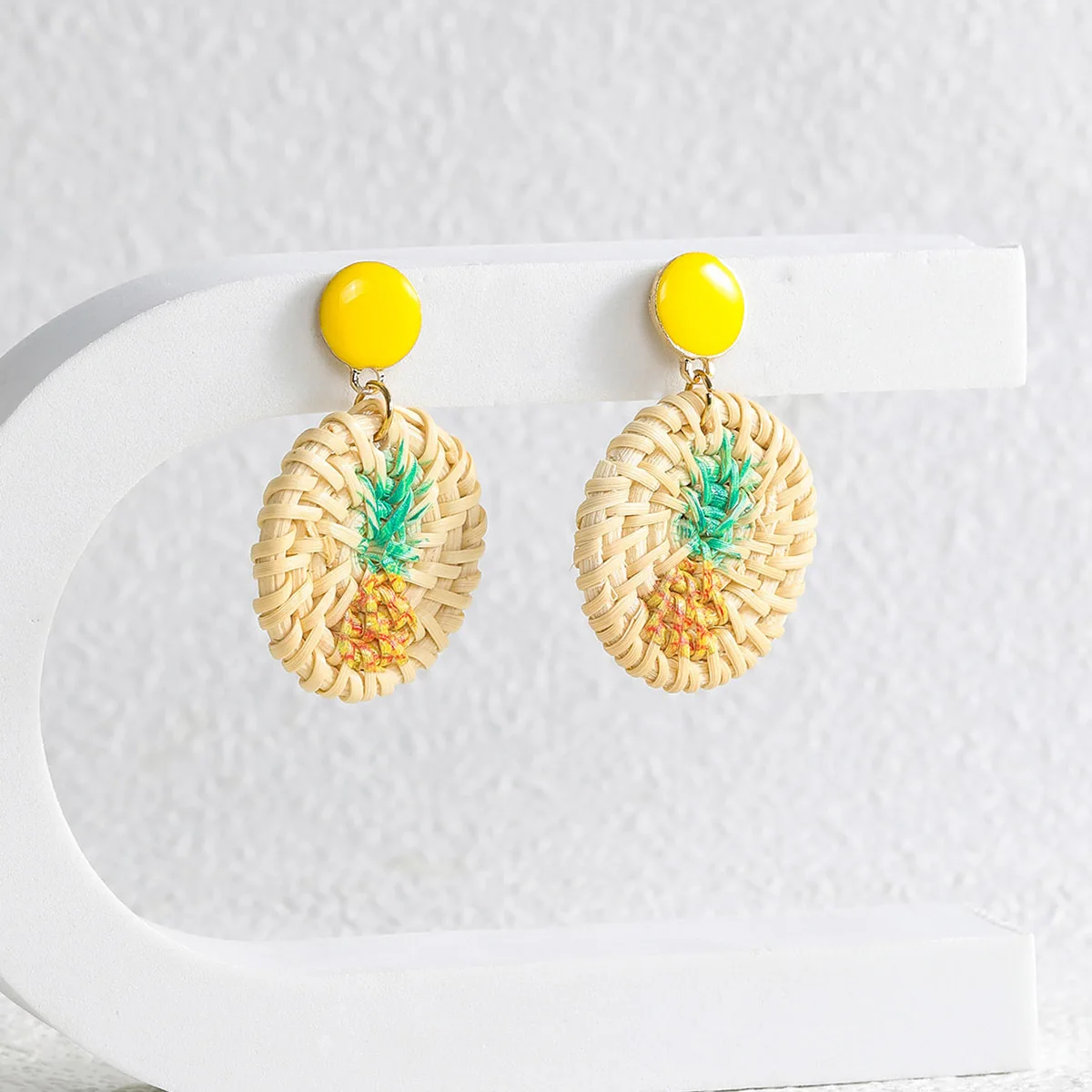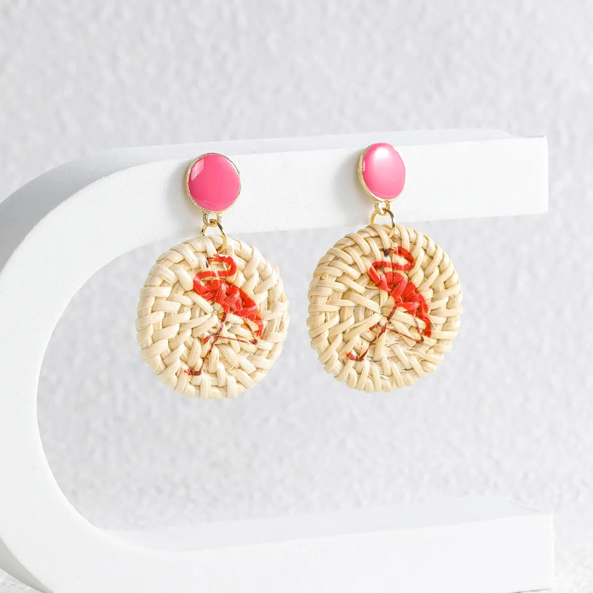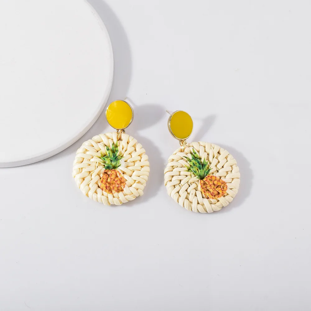 Lost Lady Handmade Straw Rattan Earrings For Women Fashion Pineapple Flamingo Print Earrings Fashion Jewelry Wholesale Outlet
