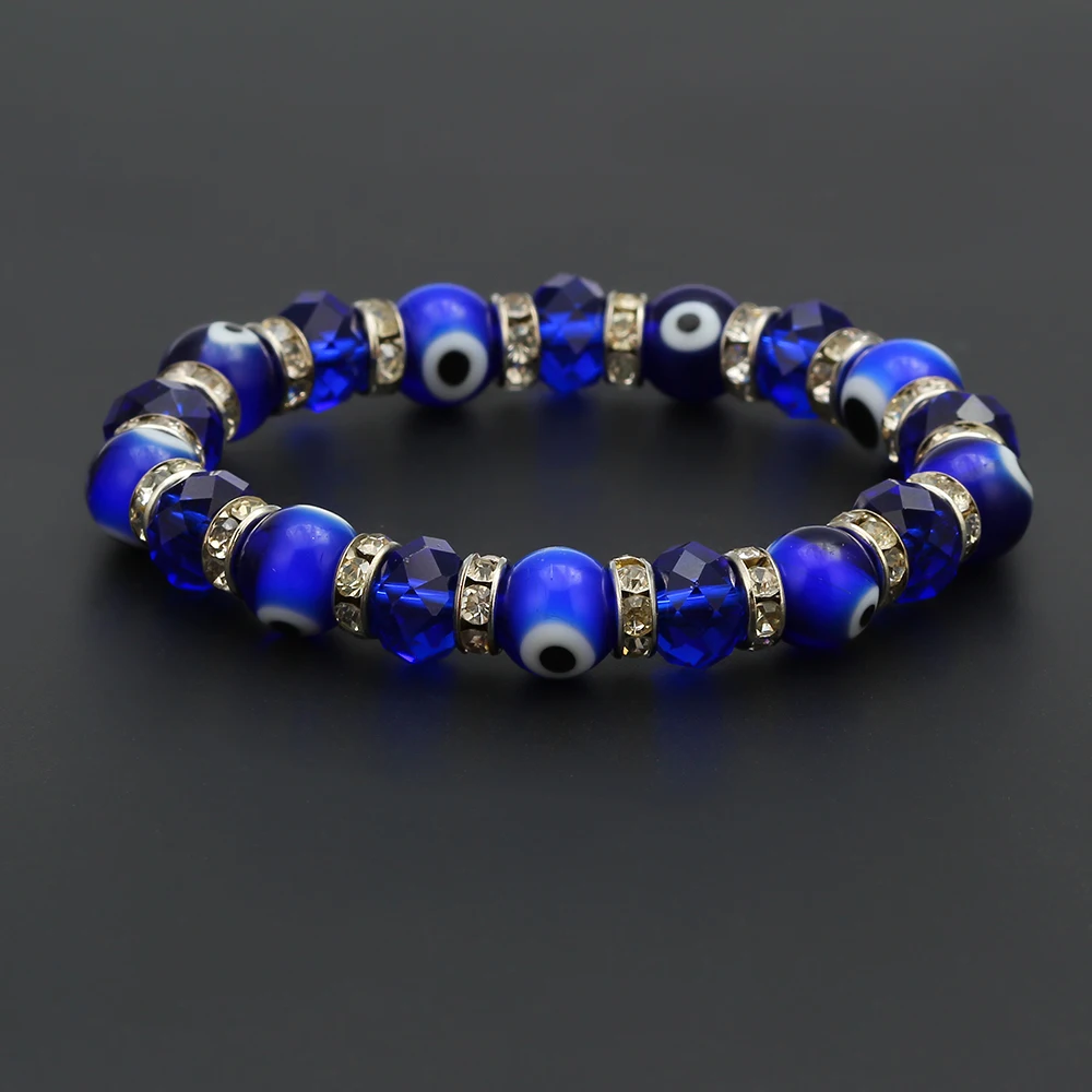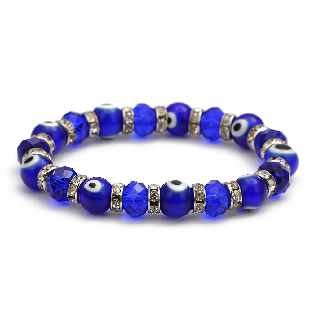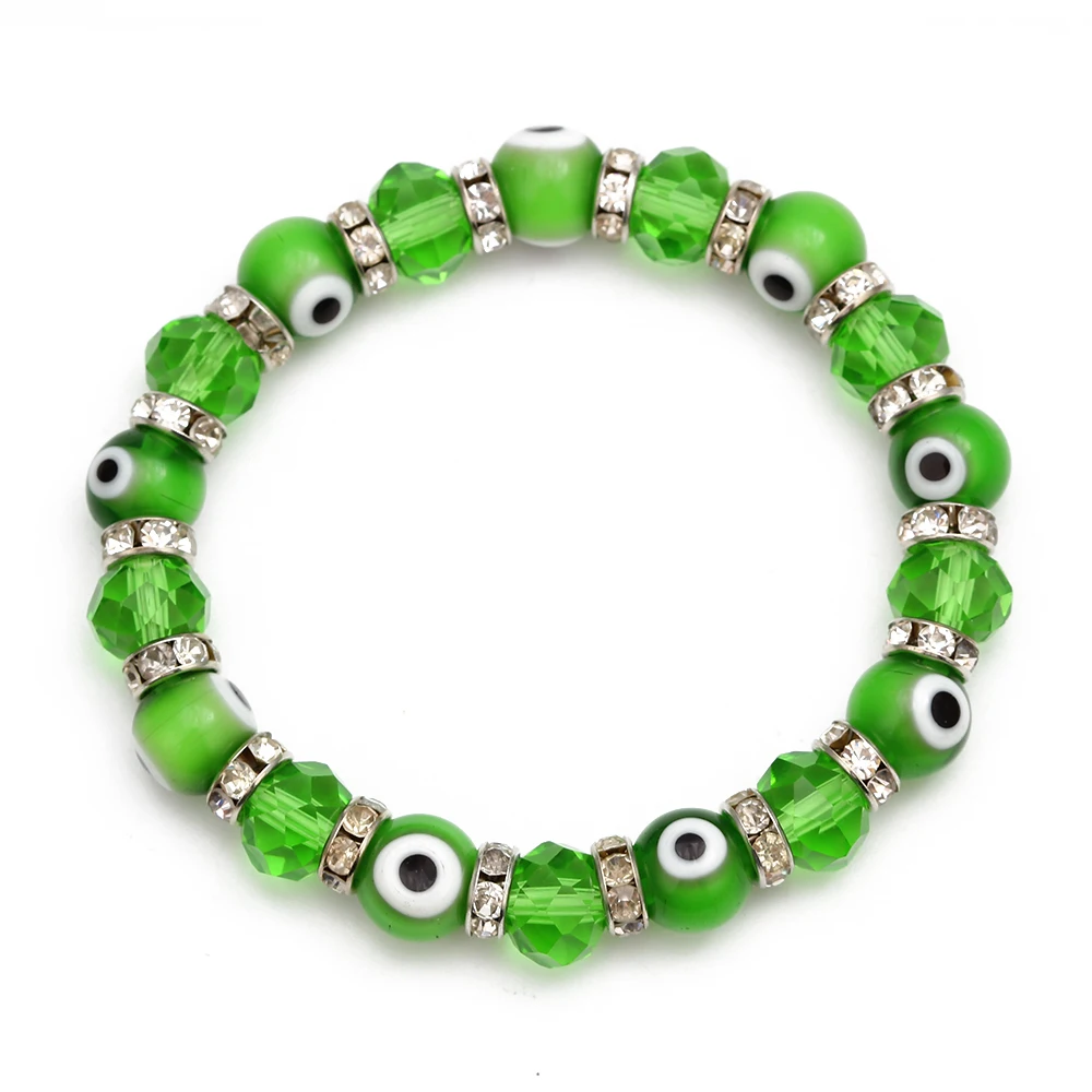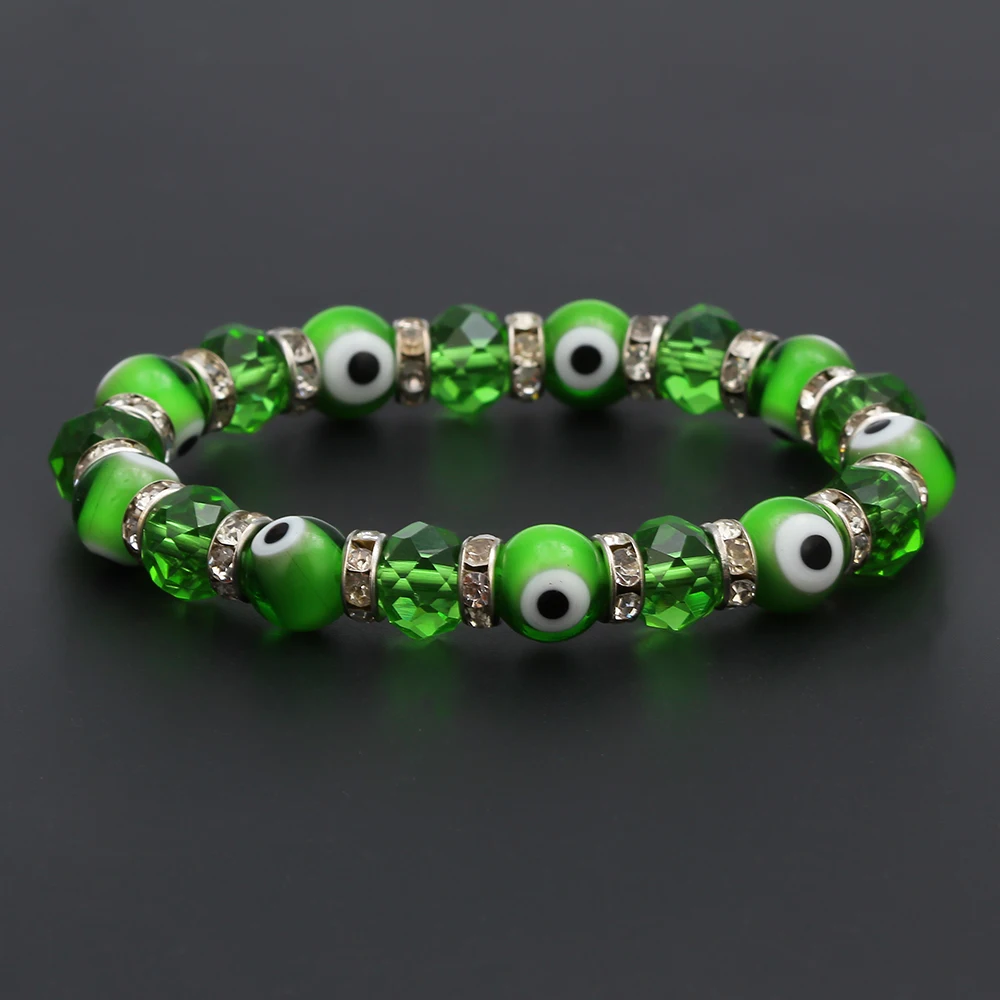 Lucky Eye Glasss Beads Blue Evil Eye Bracelet Black Red Green Strand Bracelet Adjustable Jewelry for Women Female Men EY6482