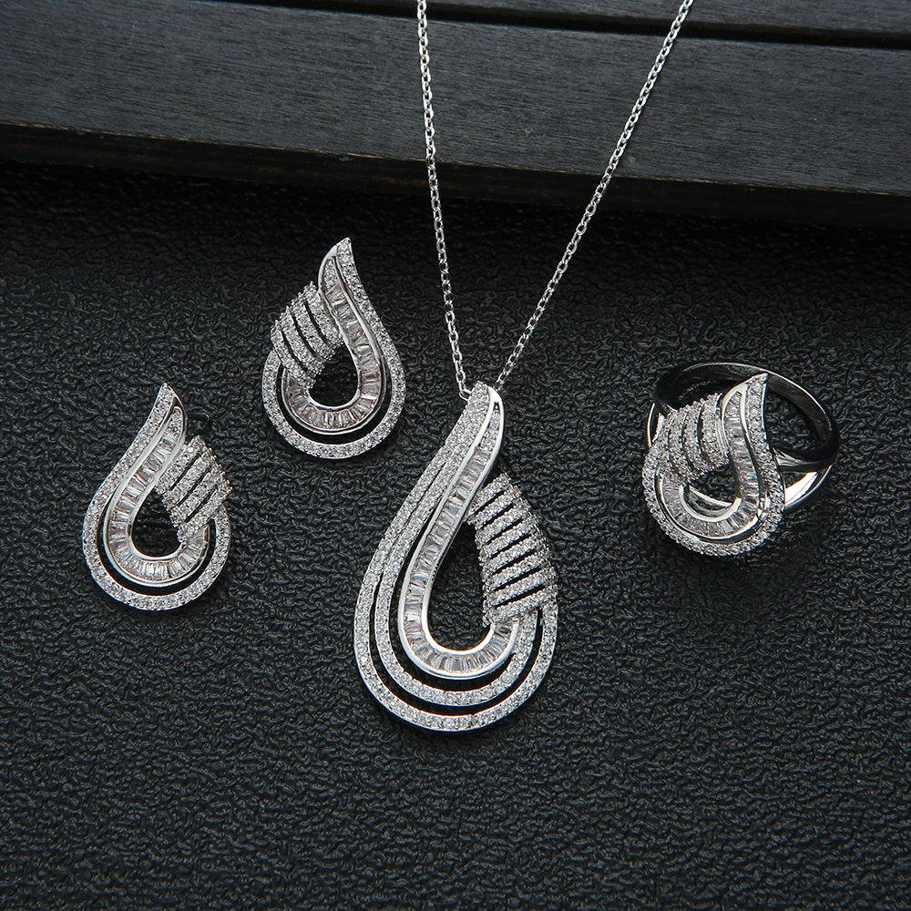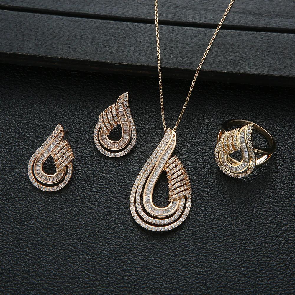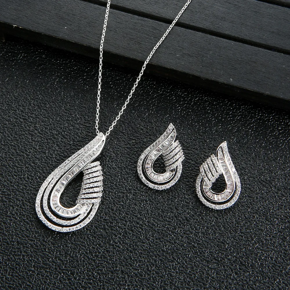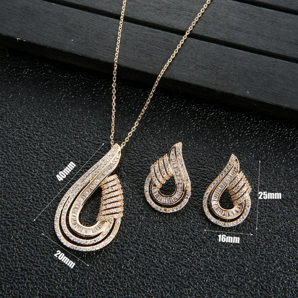 Luxury AAA Zircon U Shape Necklace Earrings Set For Women High Quality Party Wedding Jewelry D1470