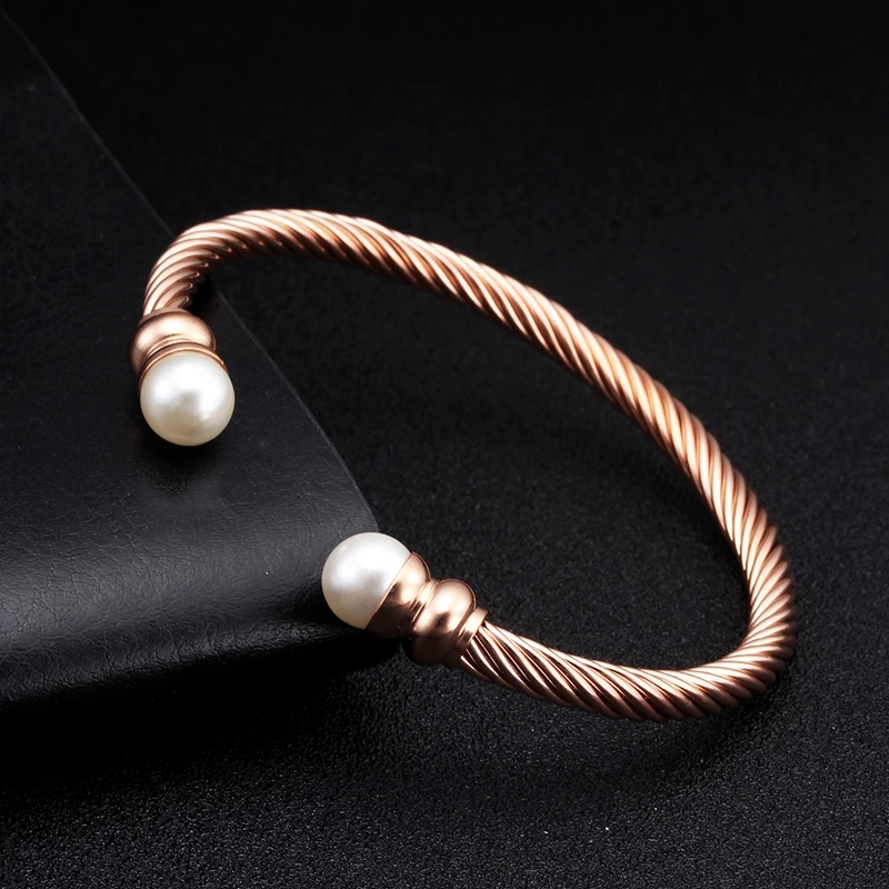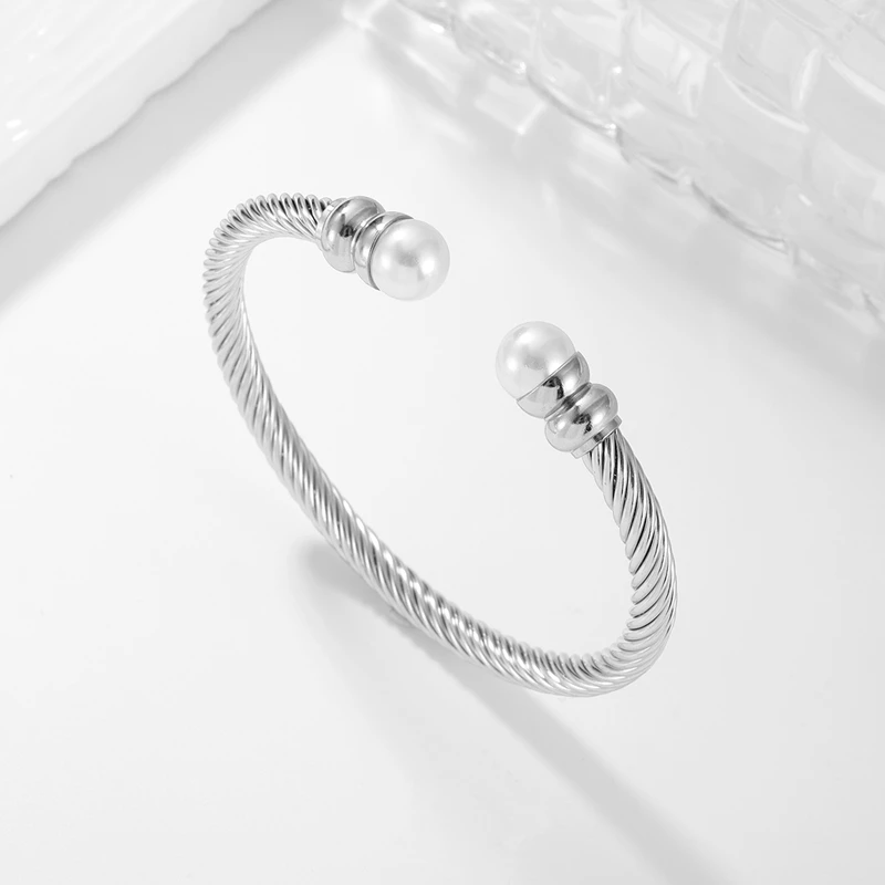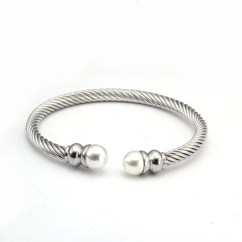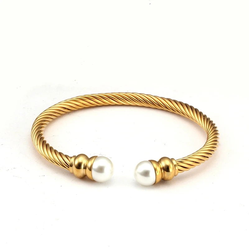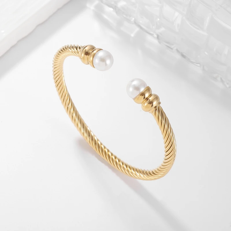 Luxury Open Women Ladies Charm Open Cuff Bangles Pearl Female Fashion Jewelry Brand Braided Chain Link Sporty Bracelets