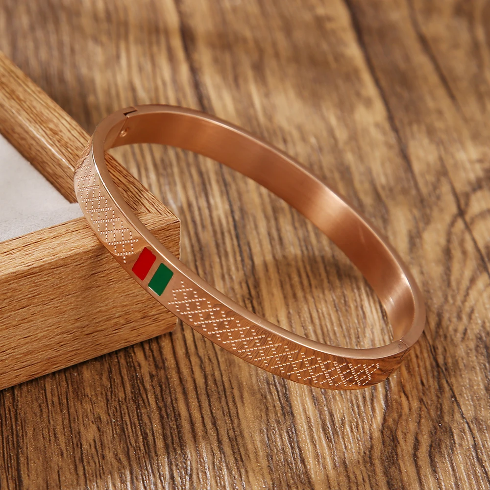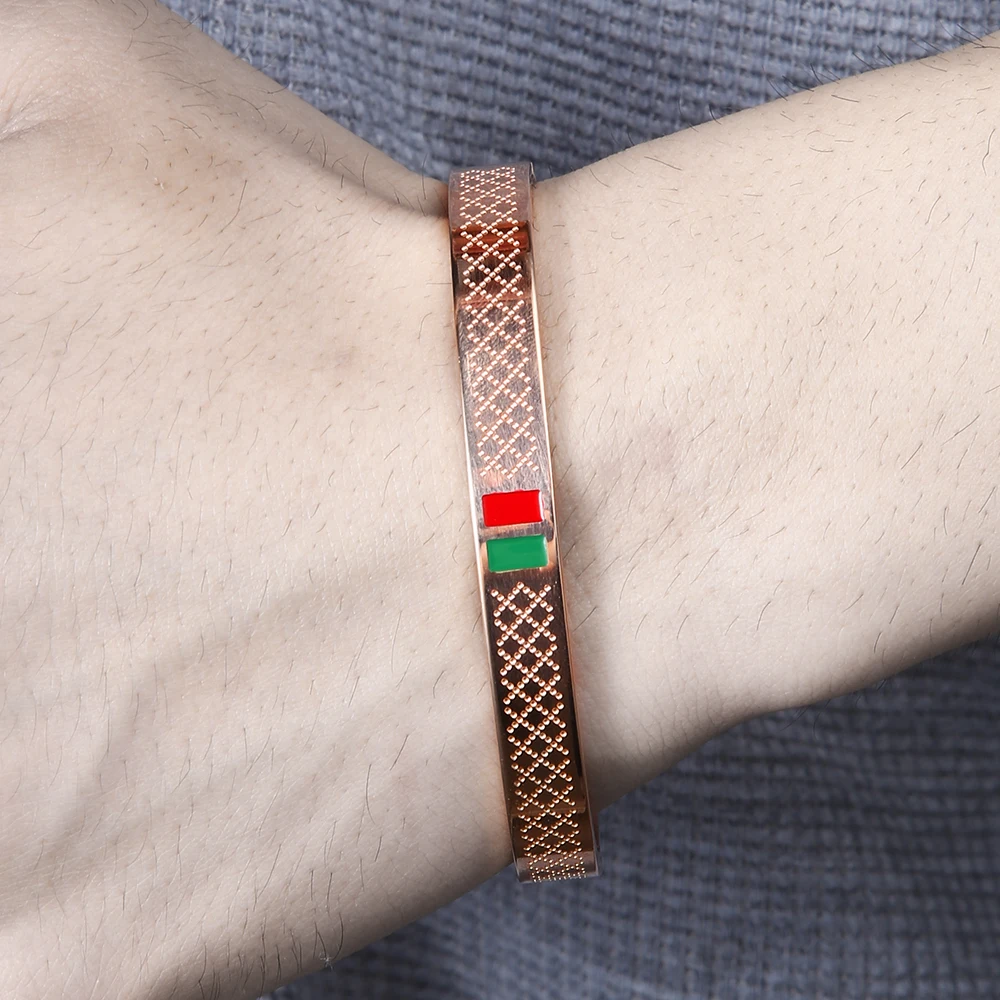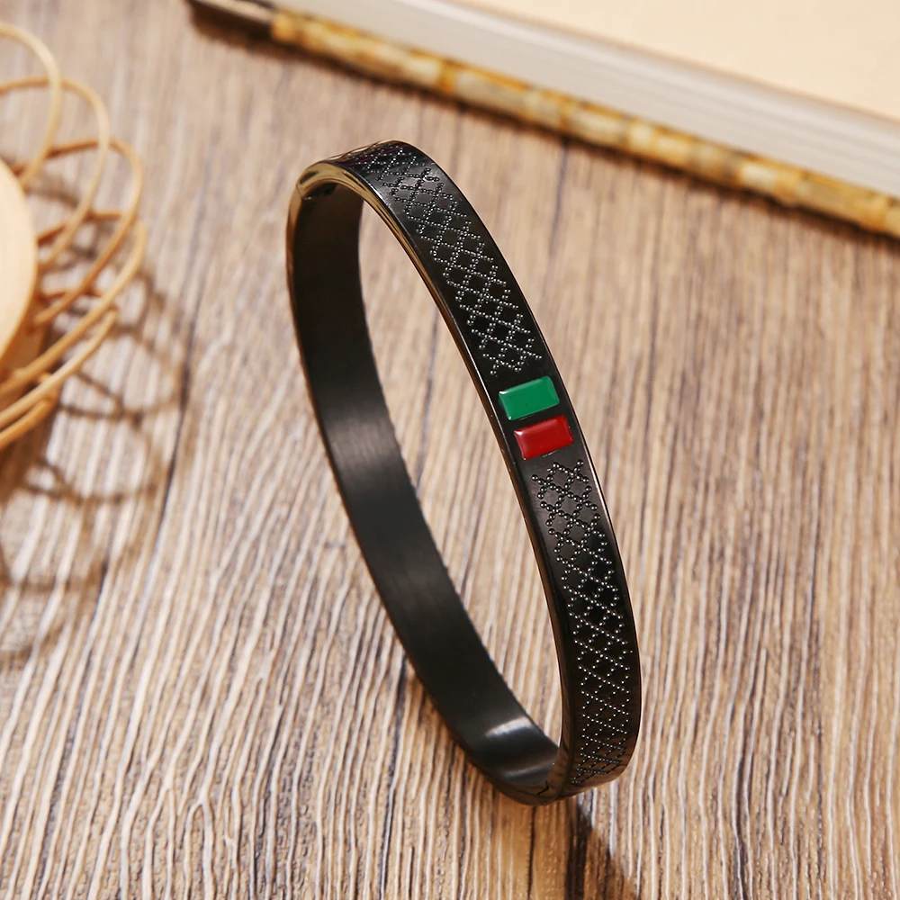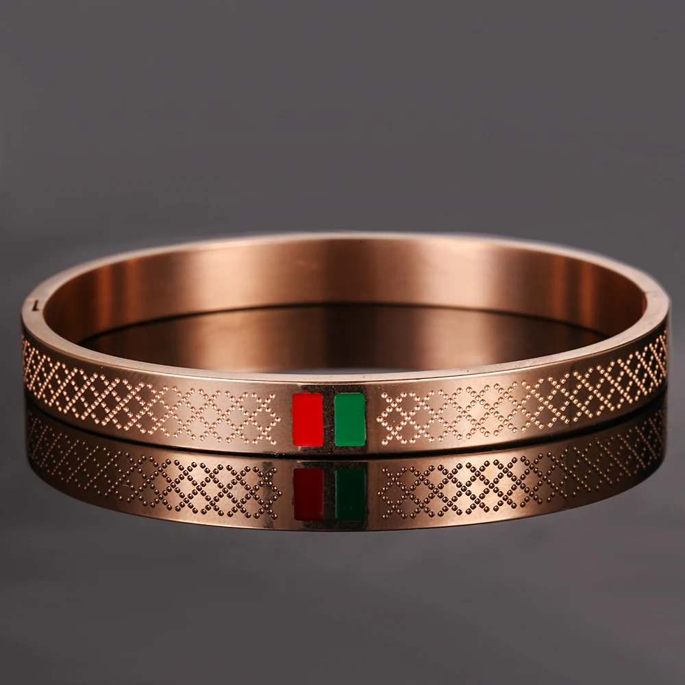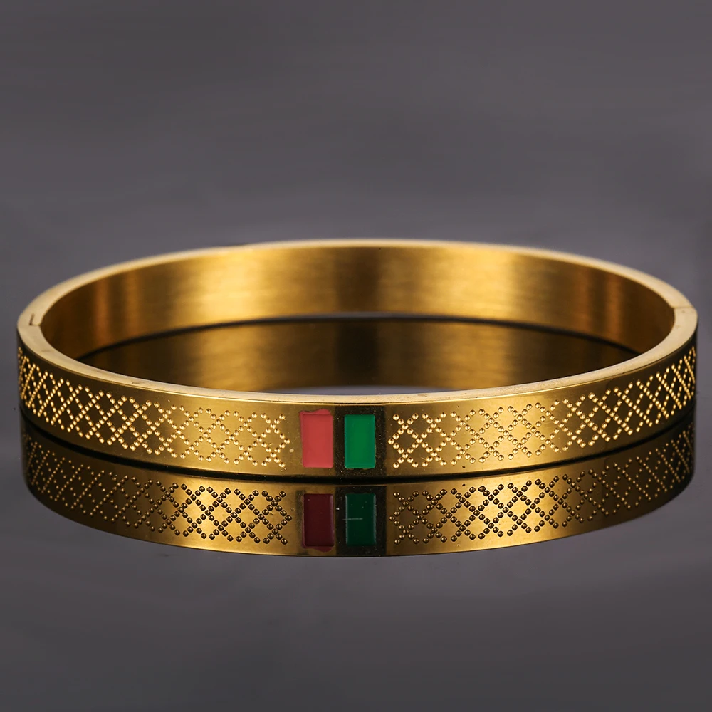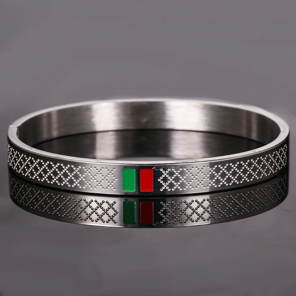 Luxury Round Enamel Stainless Steel Bangles & Bracelets No Fade Color Open Bangle For Women Girls Men Wedding Lover Jewelry