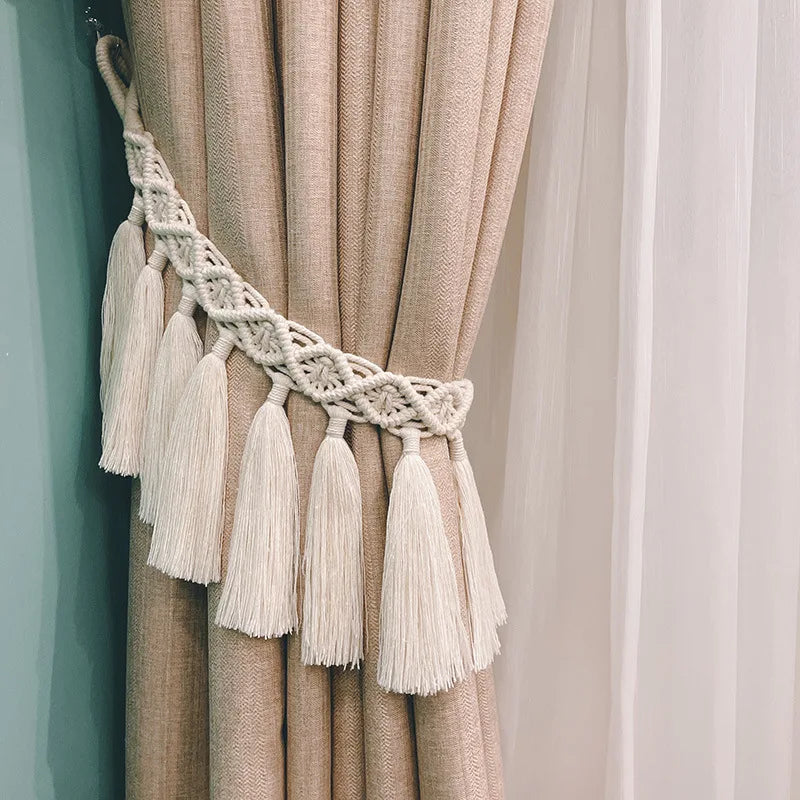 Macrame Handmade Leaf Hand-Woven Boho Tassel Curtain Tie backs Window Straps Accessories For Living Room Decor