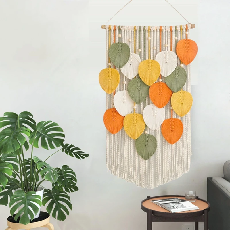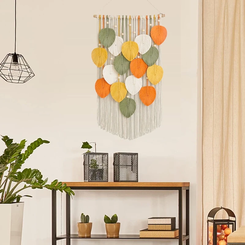 HIGH QUALITY MATERIAL: Measuring 20.5 x 25.5 inches, this Bohemian tapestry is crafted from natural cotton yarn with wooden poles and beads, ensuring durability. A protective film on the back maintains the leaf's shape; iron or comb if disarranged during transit.