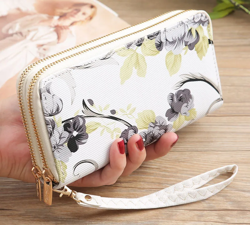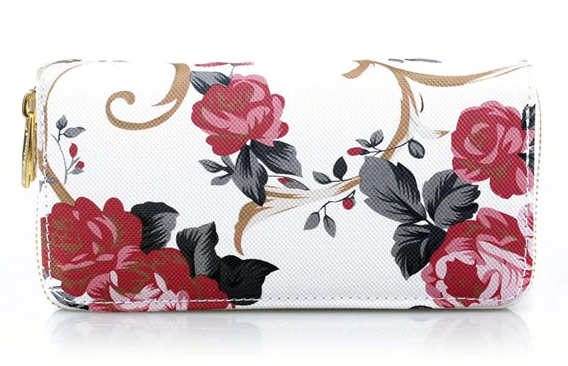 Mara's Dream 2020 Women's Wallet Rose Print Wallet Fashion Handbags Wild Double Zipper Clutch Bag Multi-card Women Bag Purse