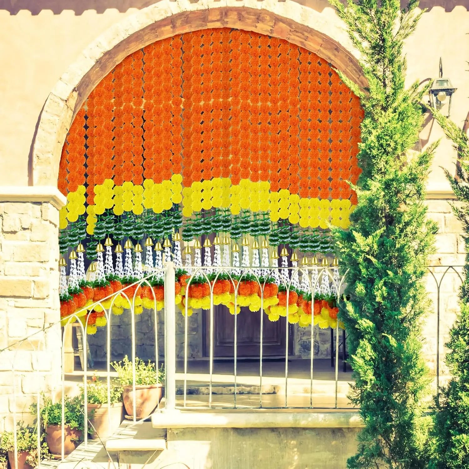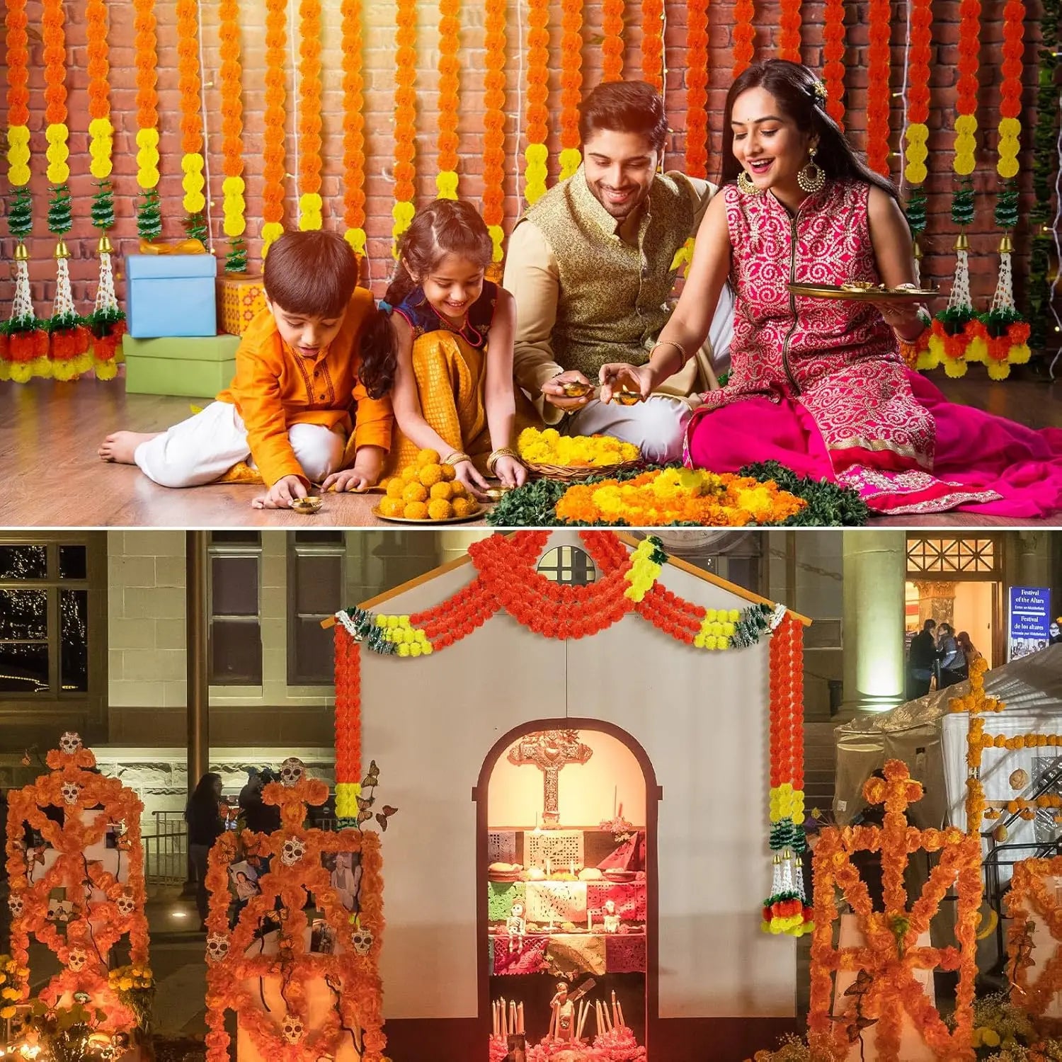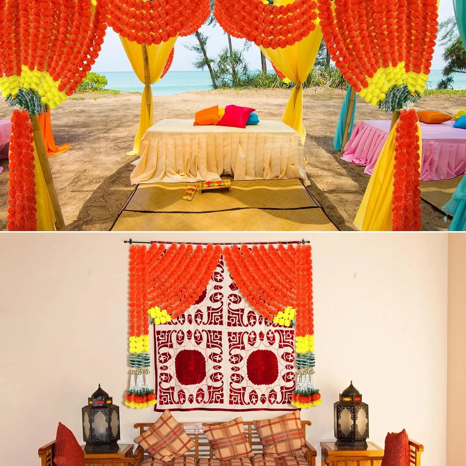 --These bright and vibrant Indian Pooja wreaths are perfect for decorating various events such as weddings, birthdays, and holidays; Add color to your party decorations or create a festive atmosphere with them