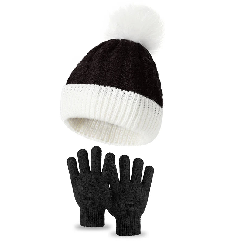 --Twist knitted, fashionable and warm knitted hat and glove set.