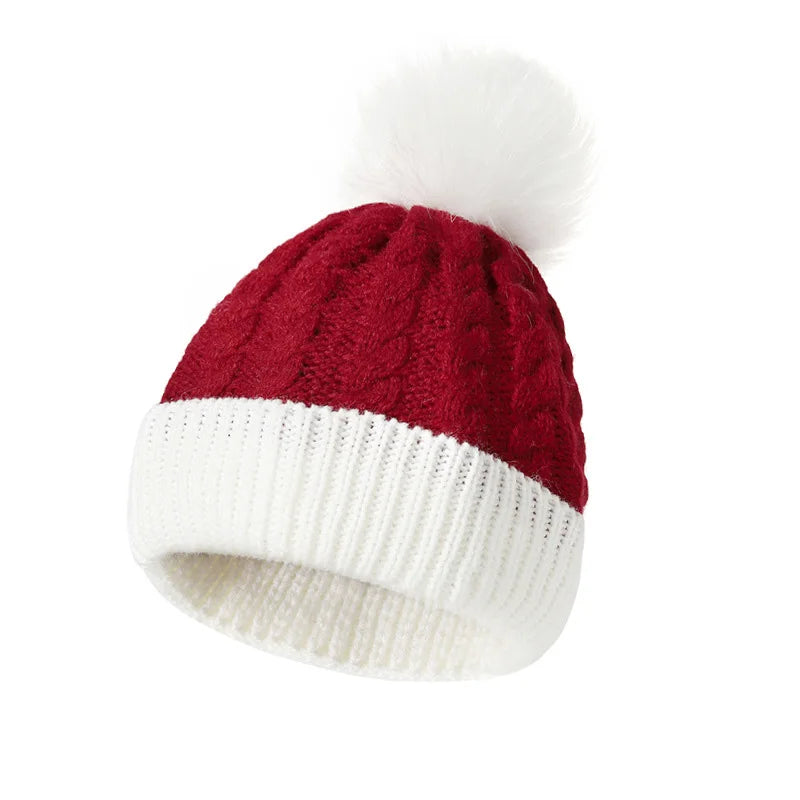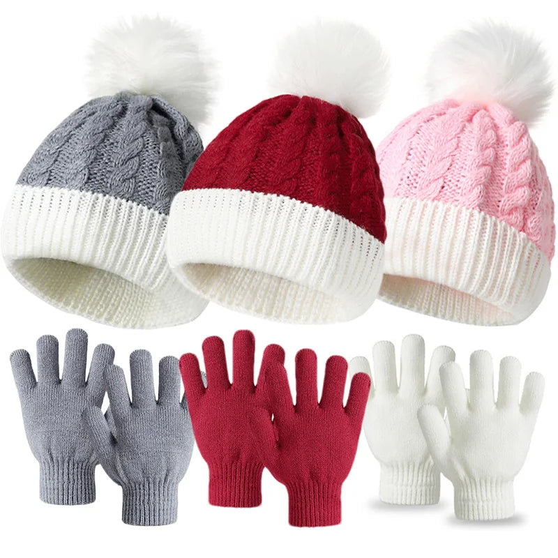 Marry Christmas Hat Gloves Set for Baby Cute Fur Ball Children Knitting Hats Boys Girls Winter Warm Accessories 1-4 Years Old