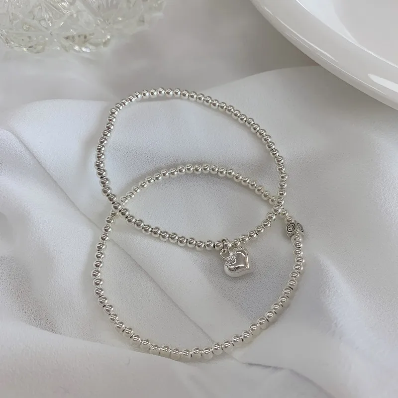 MEETSOFT 925 Sterling Silver Ball Heart Geometry Bracelets for Women Girl Minimalist Elegant Temperament Fine Jewelry Gift