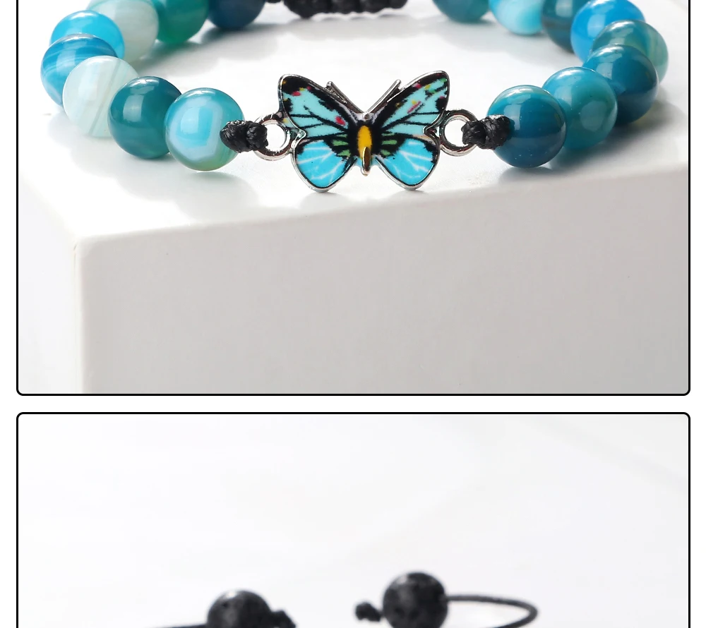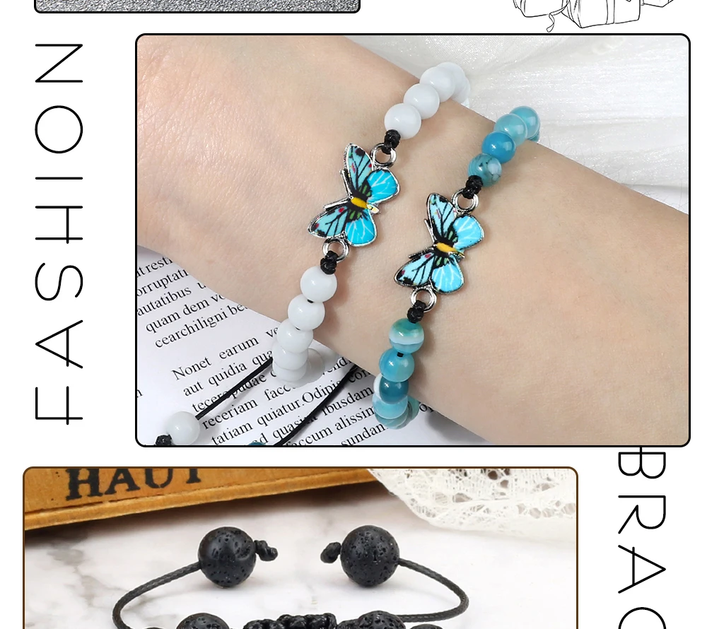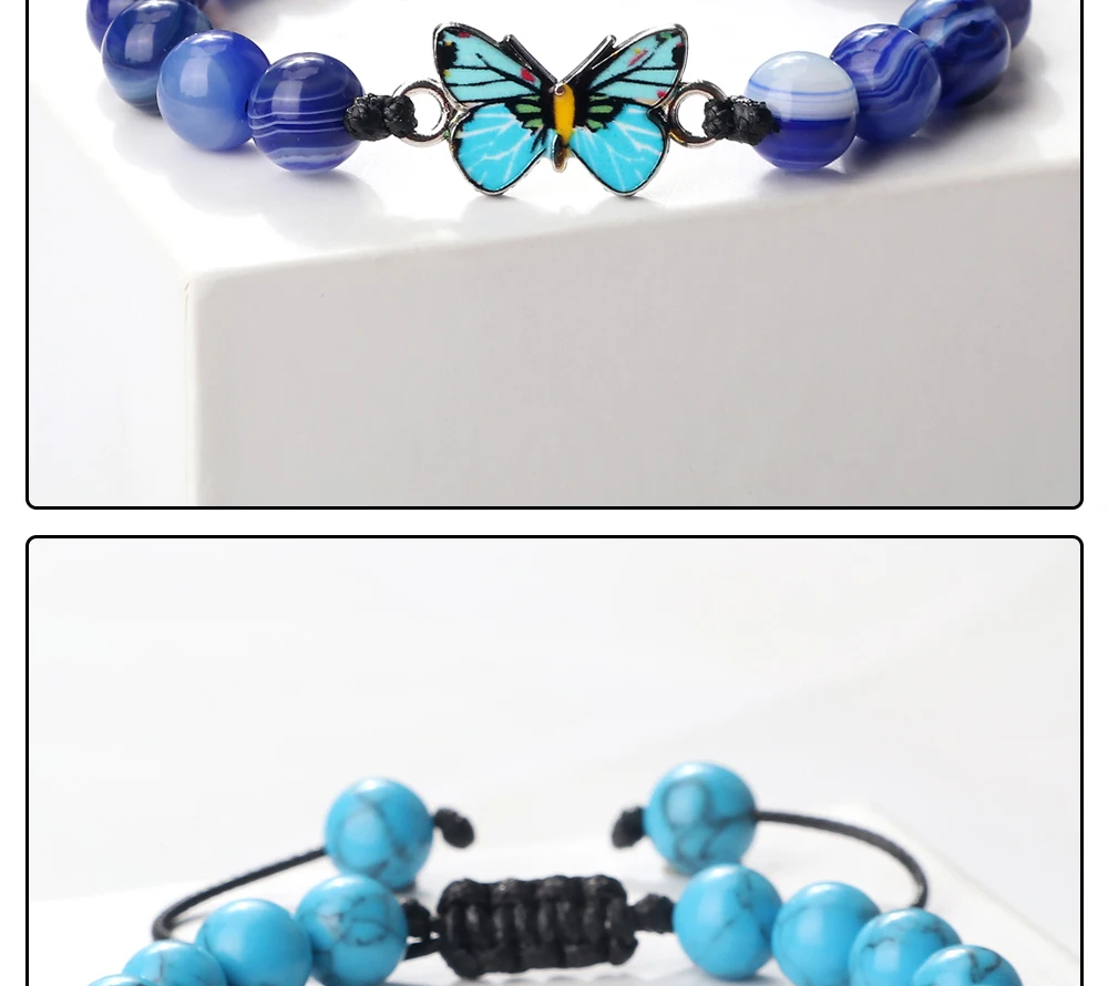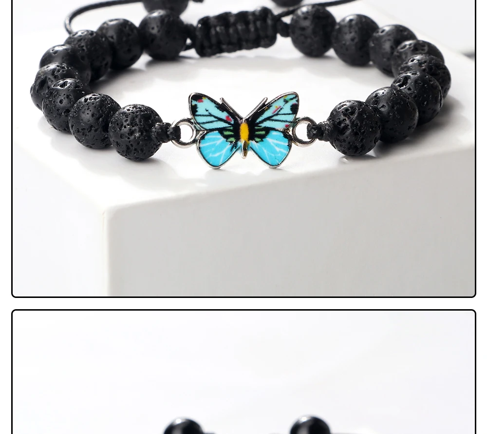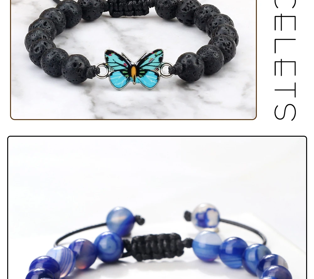 Dropshipping Men Bohemian Blue Butterfly Bracelet Handmade Women Natural Stone Agate Black Lava Beads Bracelets Bangles Fashion Wrist Jewelry Pulsera Erkek Bileklik Homme Lover Gift