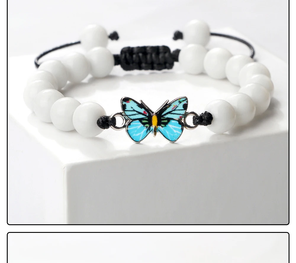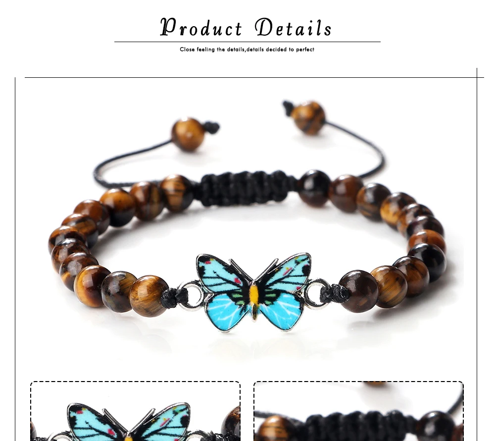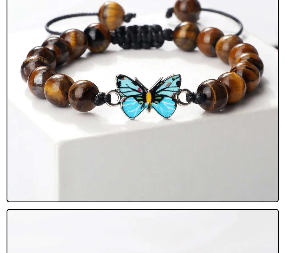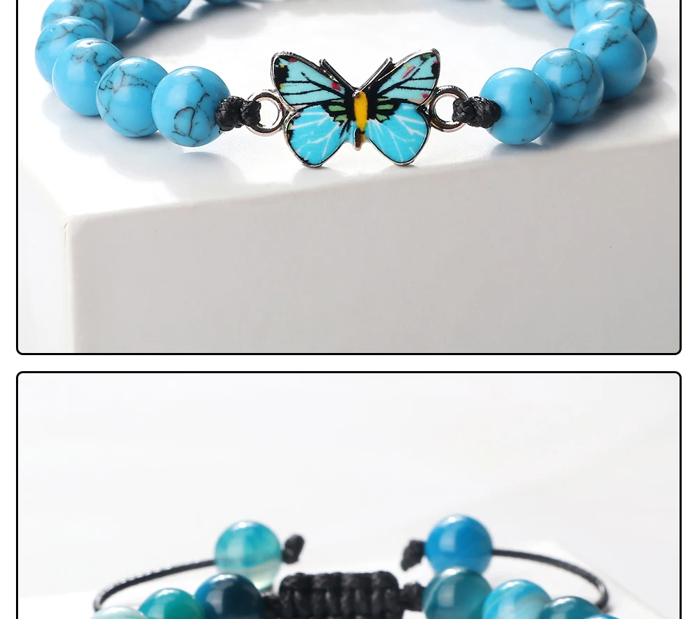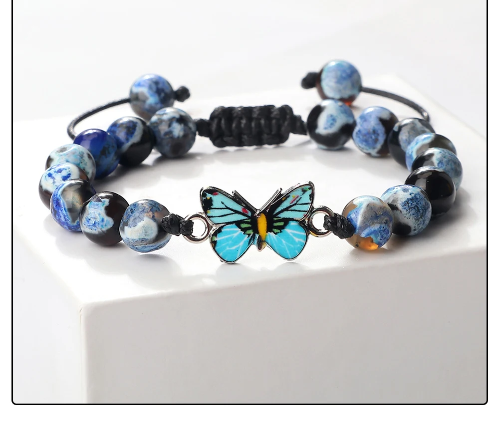 Dropshipping Men Bohemian Blue Butterfly Bracelet Handmade Women Natural Stone Agate Black Lava Beads Bracelets Bangles Fashion Wrist Jewelry Pulsera Erkek Bileklik Homme Lover Gift