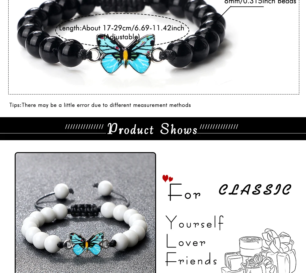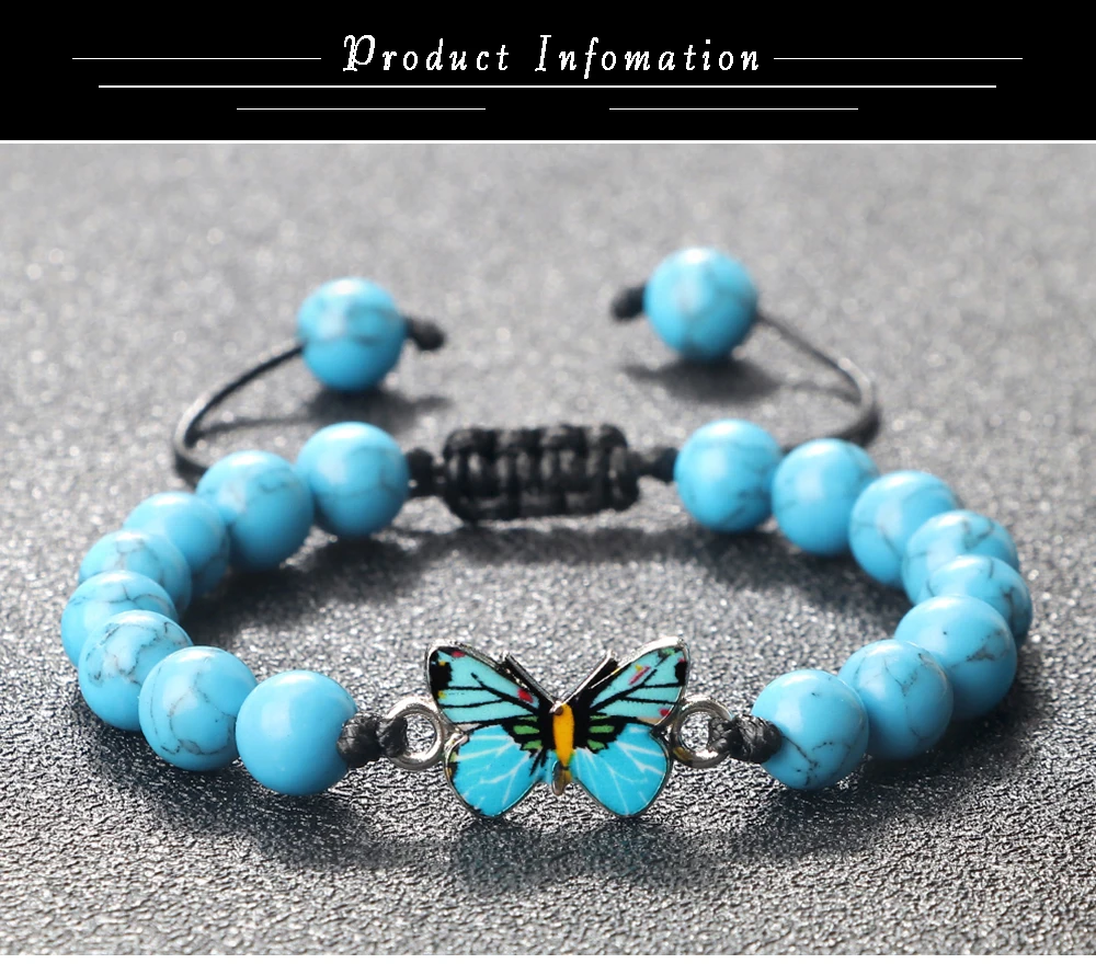 Men Bohemian Blue Butterfly Bracelet Handmade Women Natural Stone Agate Black Lava Beads Bracelets Bangles Fashion Wrist Jewelry