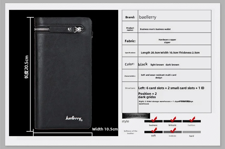Men's Wallet Long Retro Style PU Leather Credit Card Holder High-Quality Business Simplicity Portable Phone Bag
